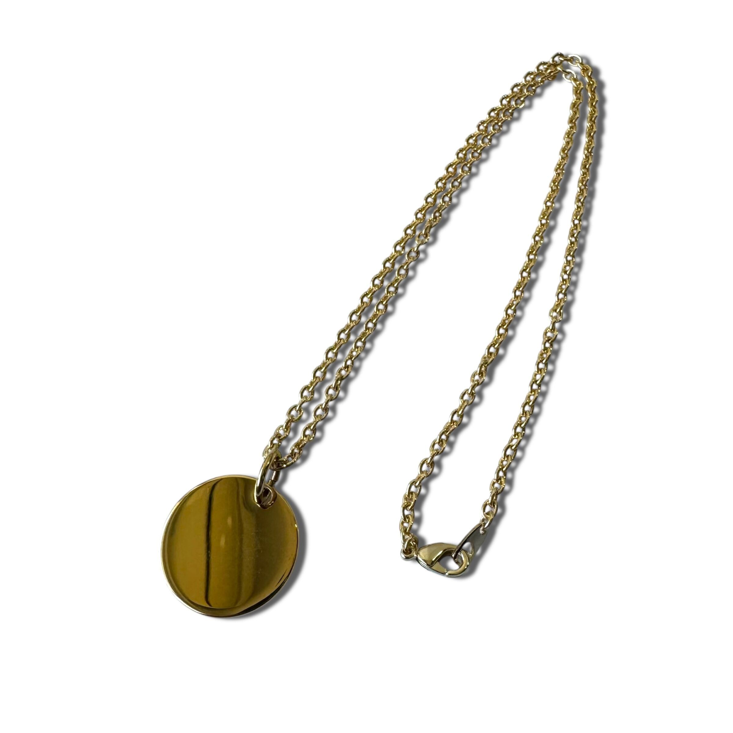存在感のあるゴージャスなサークル状のプレートにロゴの刻印がセクシーなデザインネックレス✨️