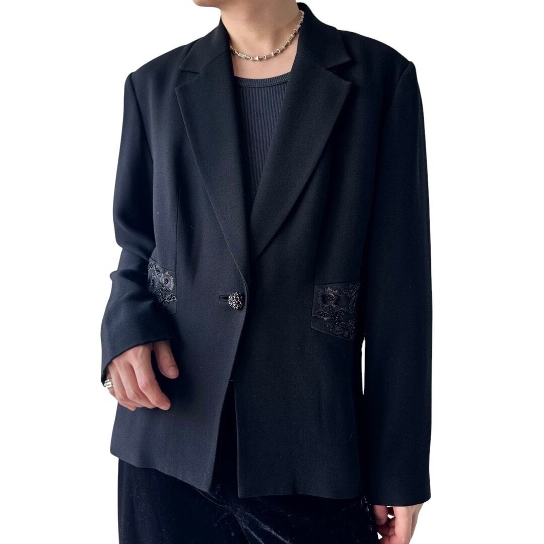 フロントに両横に刺繍とビーズが装飾されたさりげないお洒落さが最高のジャケット!!!!