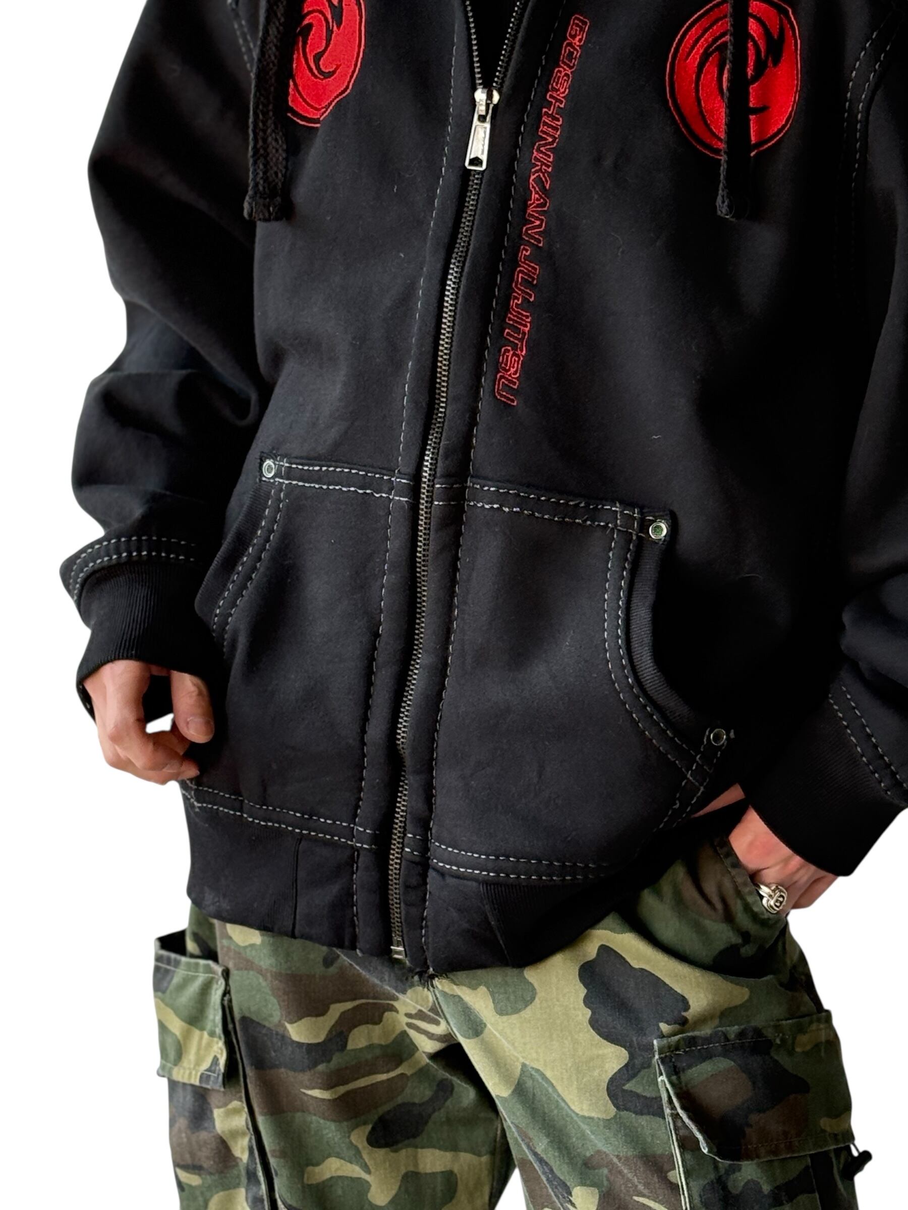 【GOSHINKAN JUJITSU】Embroidered stitchwork kanji design zip hoodie