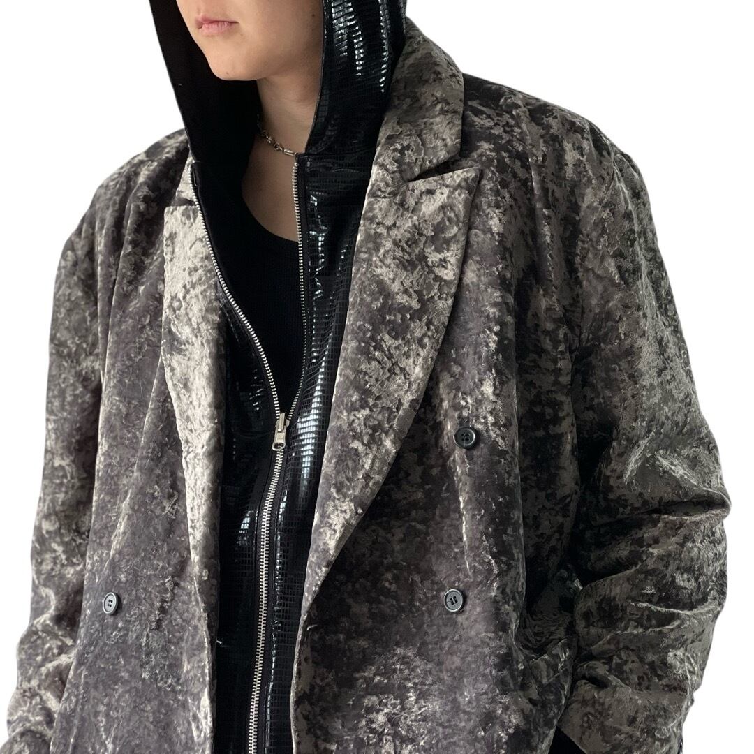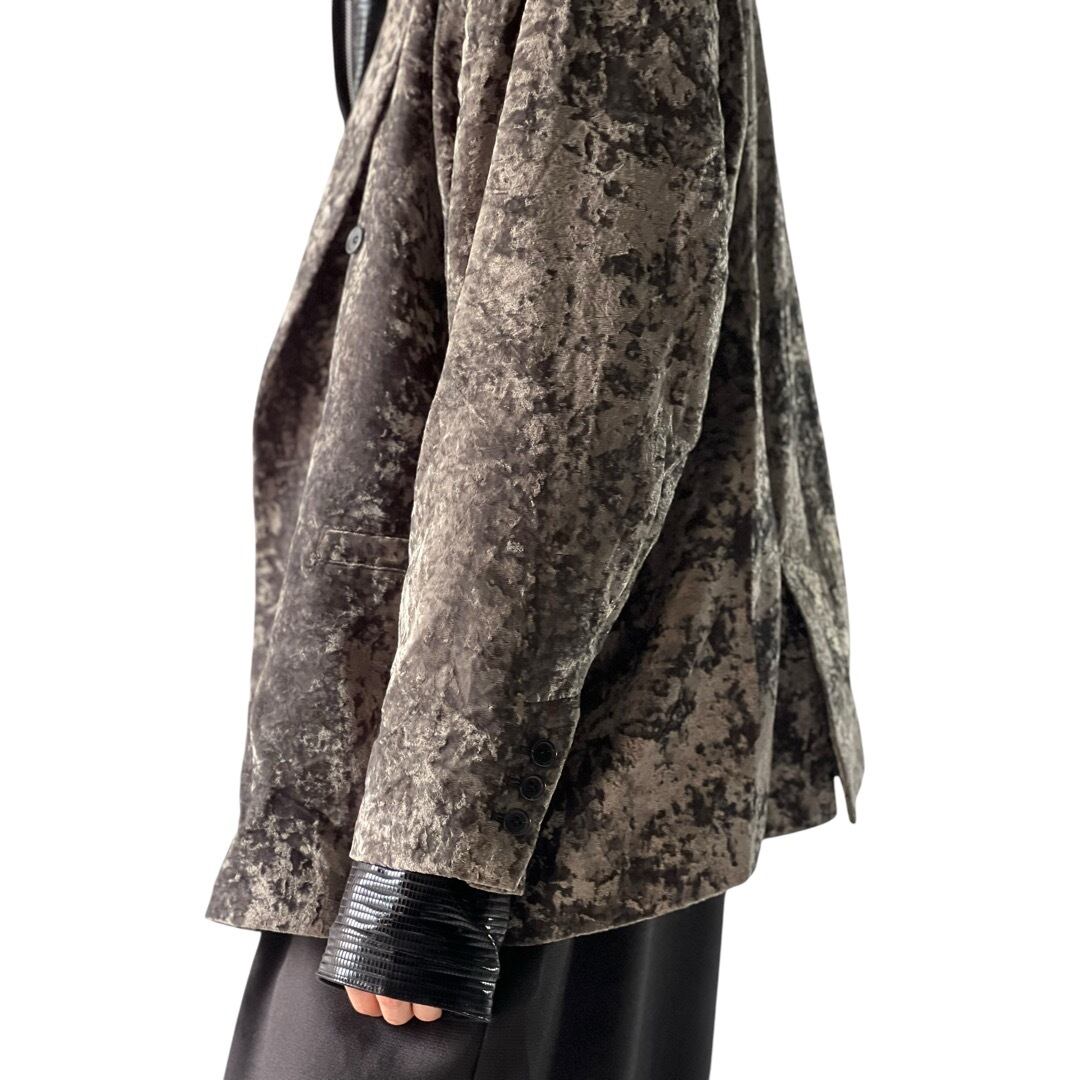 ベロア生地の表情に凹凸感があり光沢感もより一層強いモードなテーラードジャケット‼️