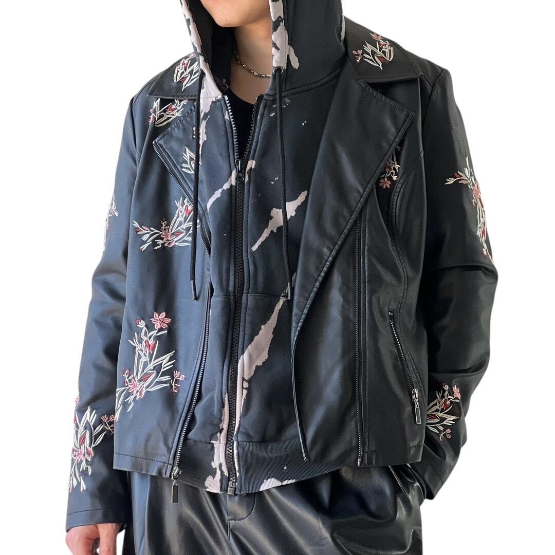 【ALFANI】 Flower Embroidery design NON LEATHER Riders Jacket