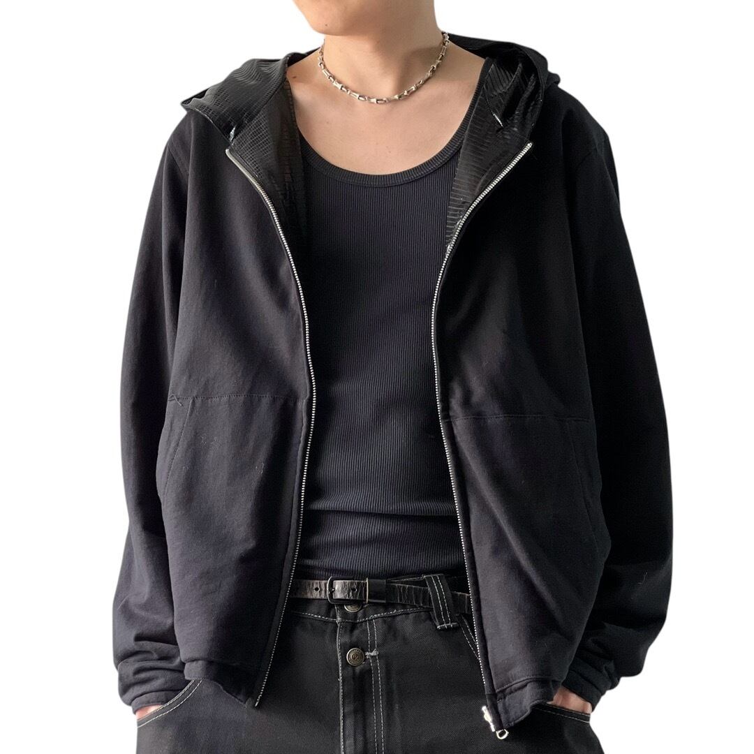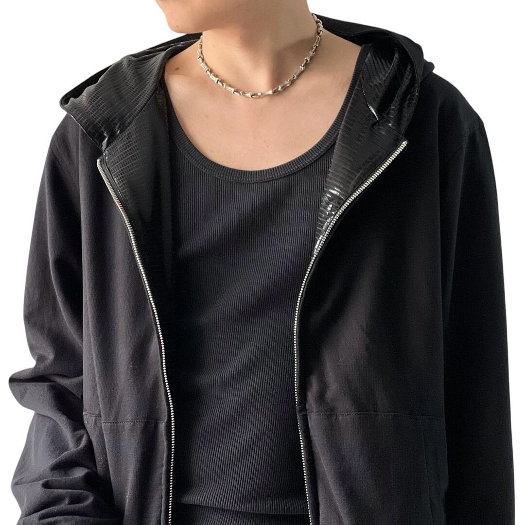 PVCのメタリックな面と、スウェット生地のシンプルな面両方で着こなせるリバーシブルパーカー!!!