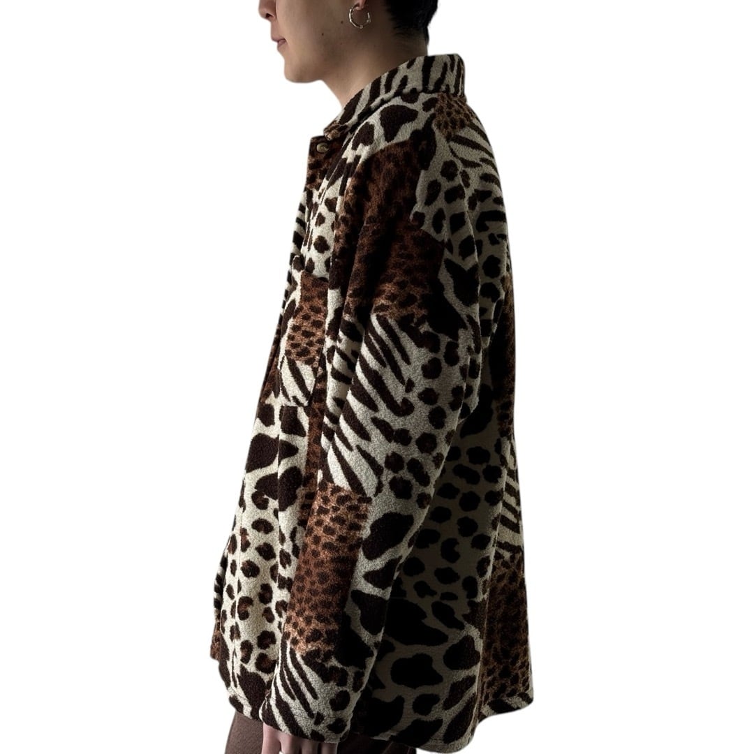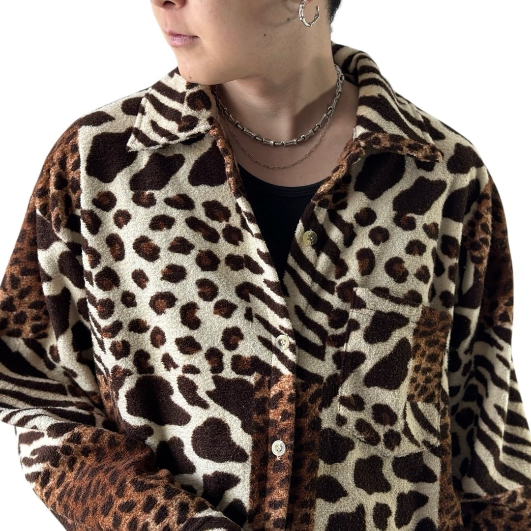レオパード、ホルスタイン、ジラフなど様々なアニマル柄をパネルに敷き詰めたパイルシャツ✨