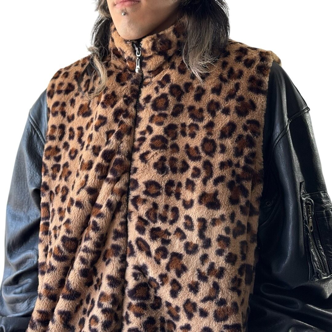 ♾Sonthem Stitch♾ leopard patterned design faux fur over sized vest size2XL-3XL