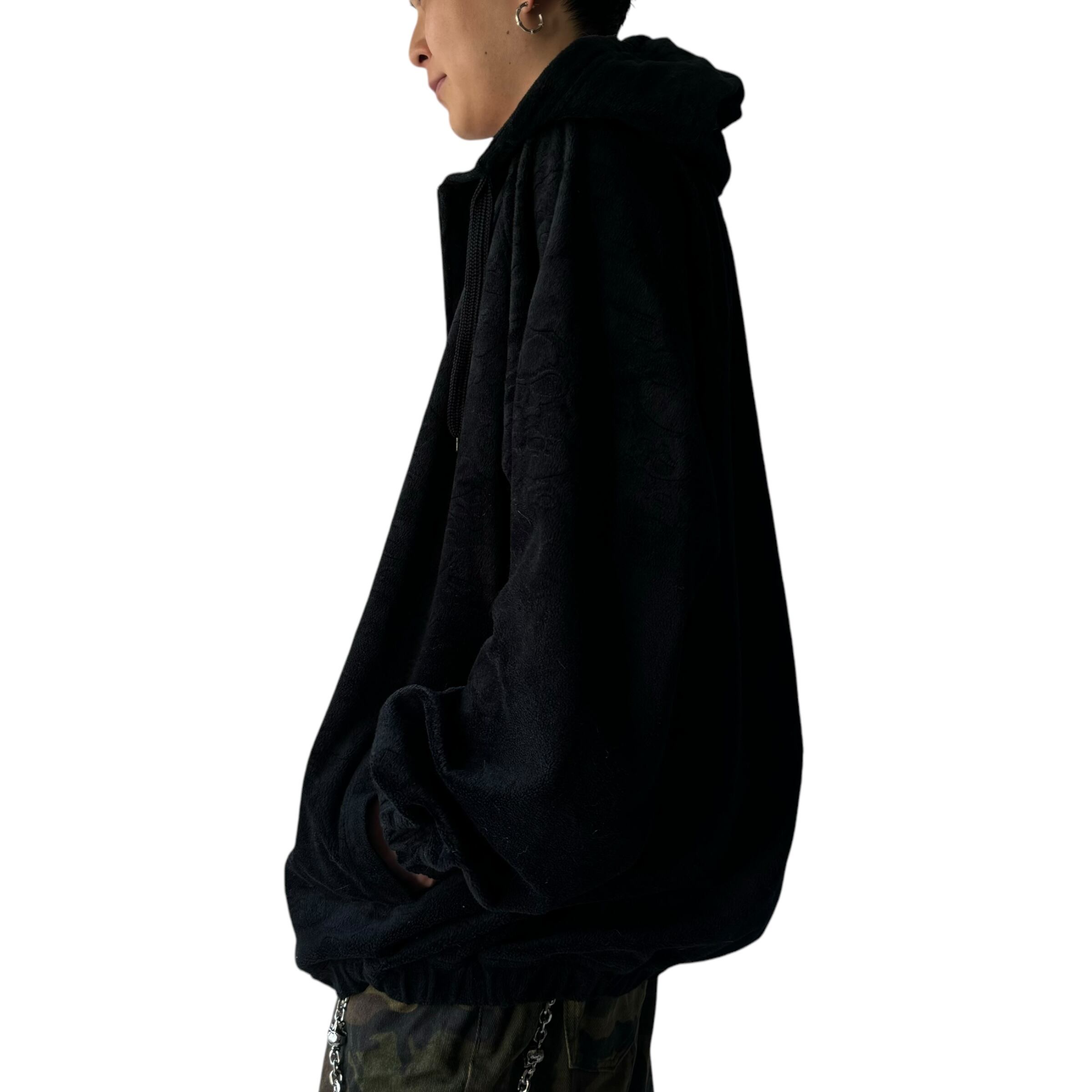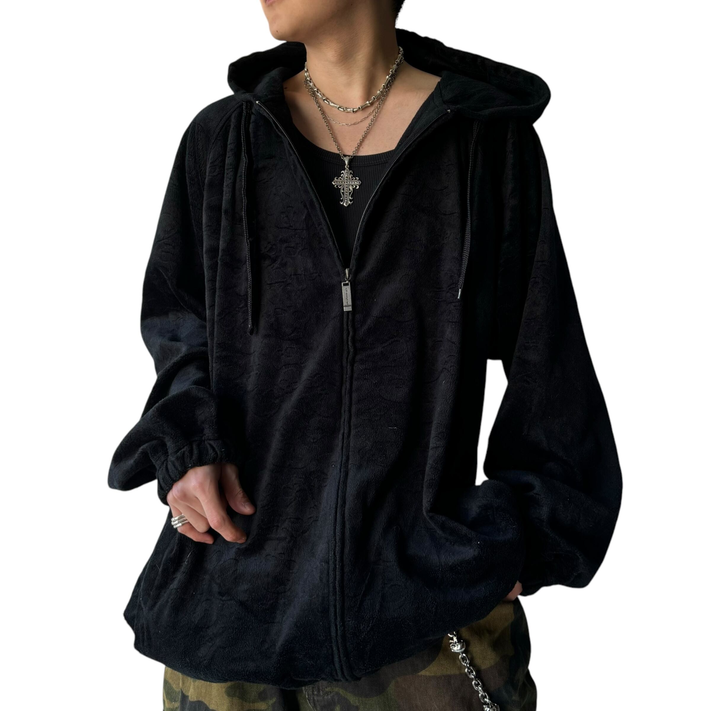 ♾GOD BODY♾ skull motif all patterned design faux fur over sized zip up hoodie size2XL