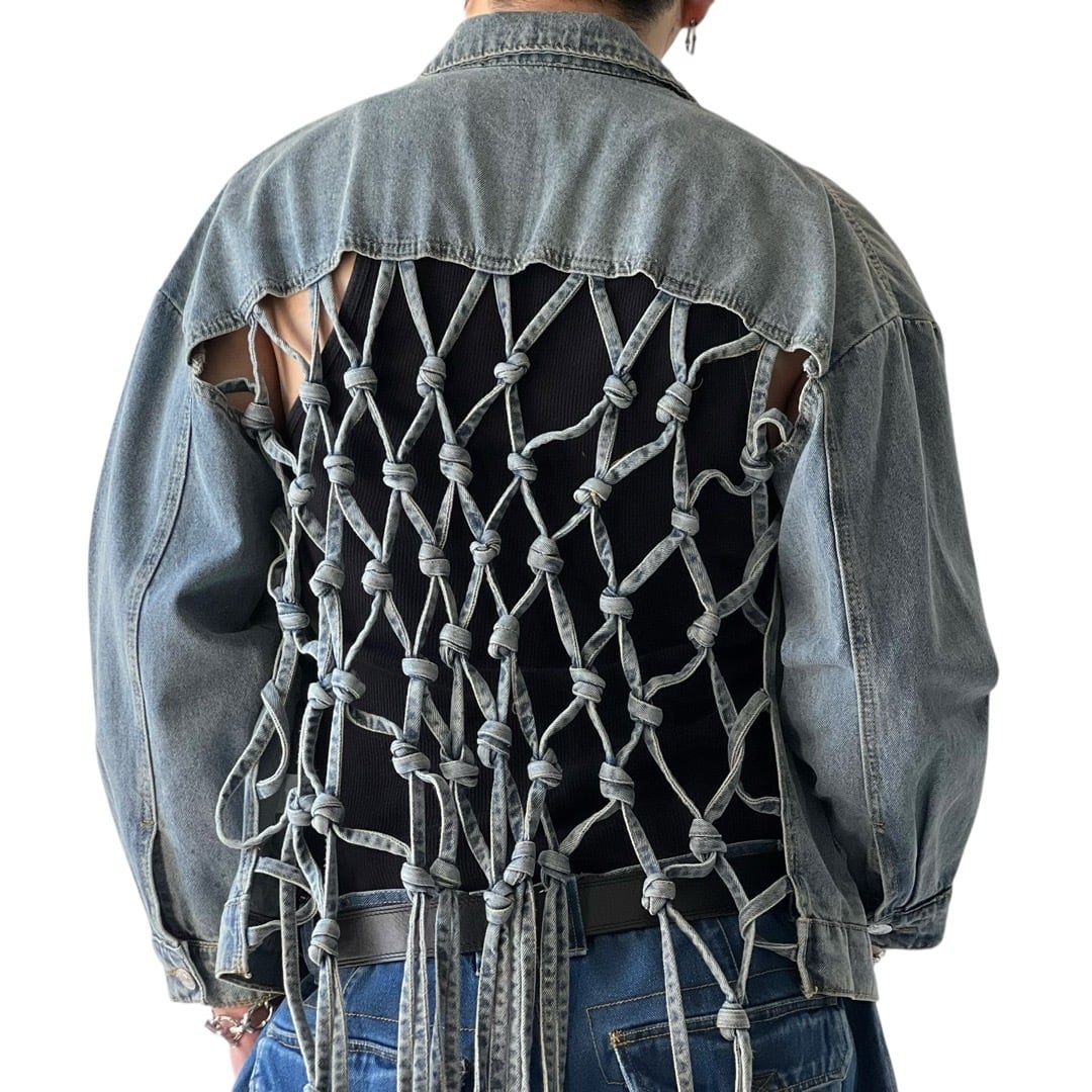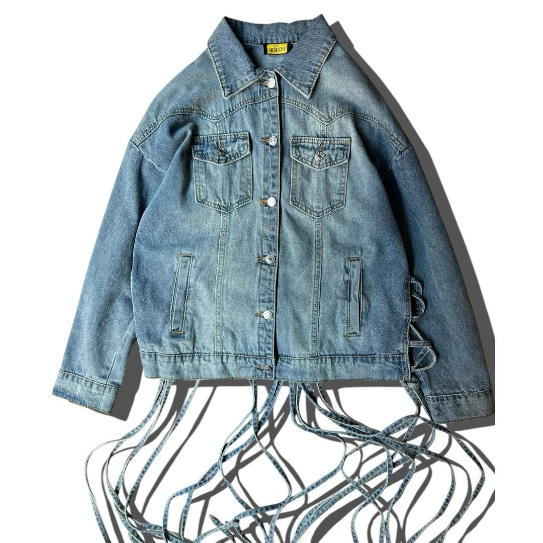 【HIGHLIGHT】Braided back lace-up denim trucker jacket