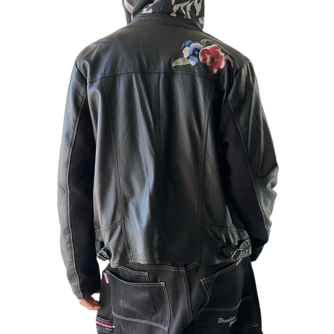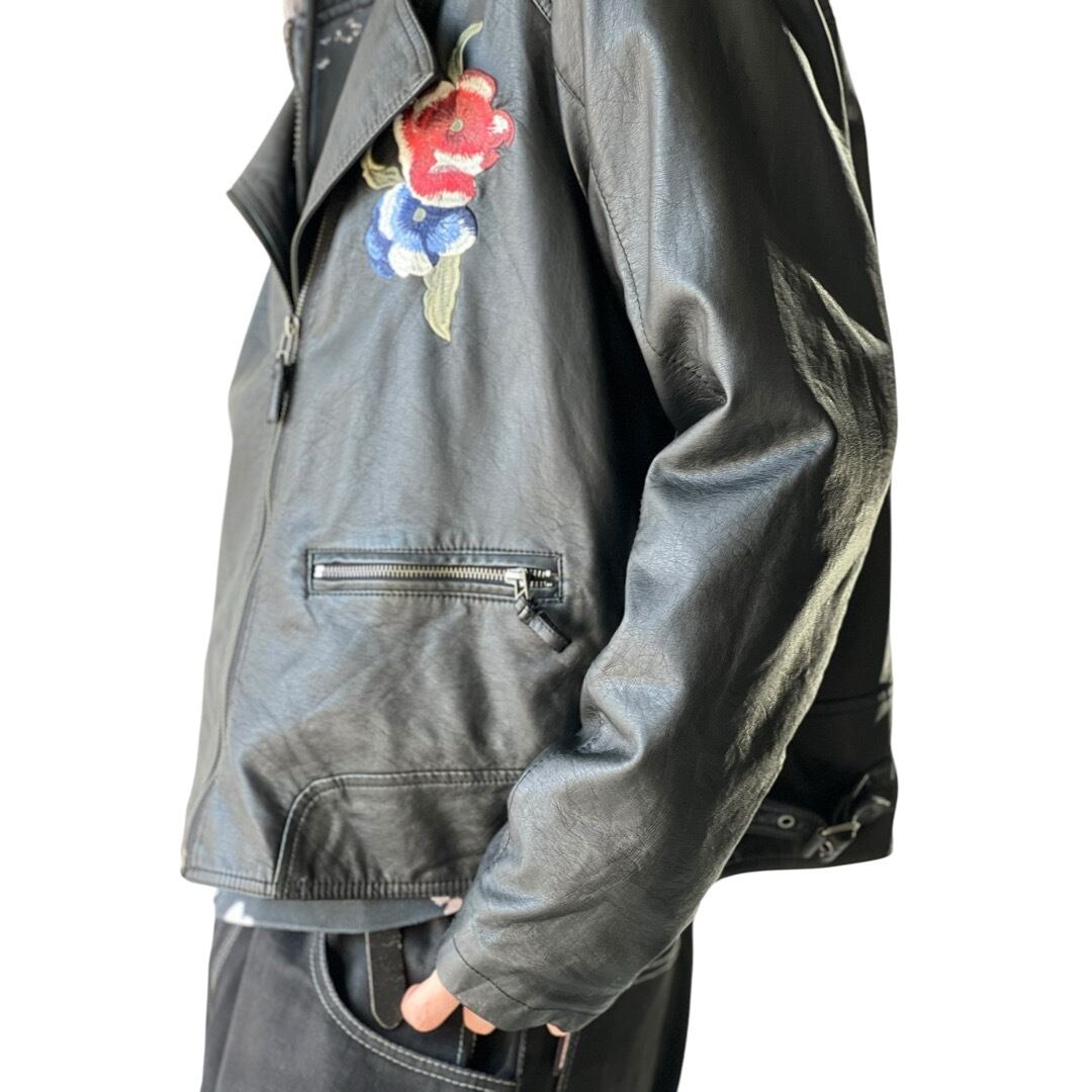 3箇所バランスよく施されたモチーフの刺繍が無骨感漂うPUレザーにいいアクセントに、そしてオシャレな見栄えと古着には中々無いデザインがオンリー❤︎
