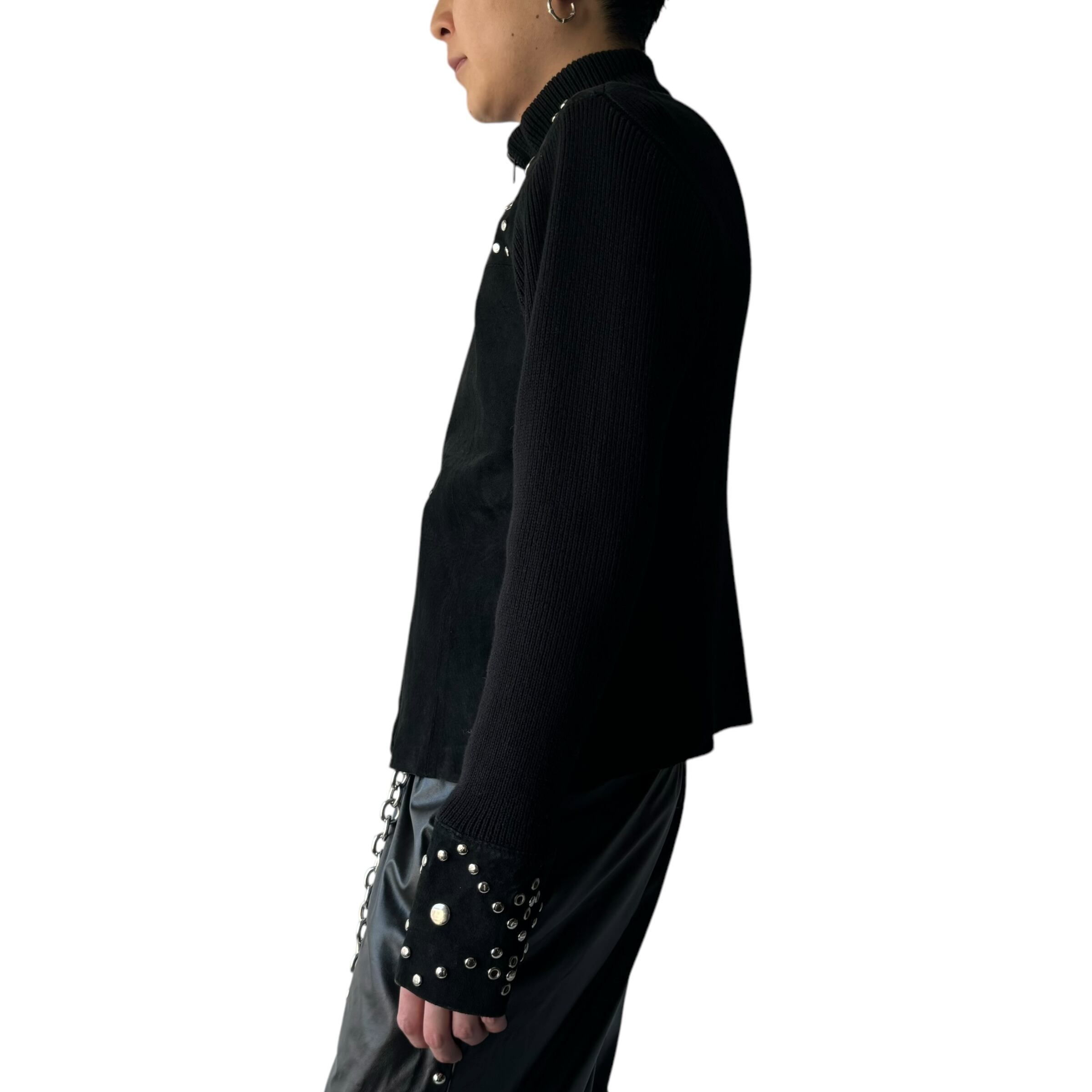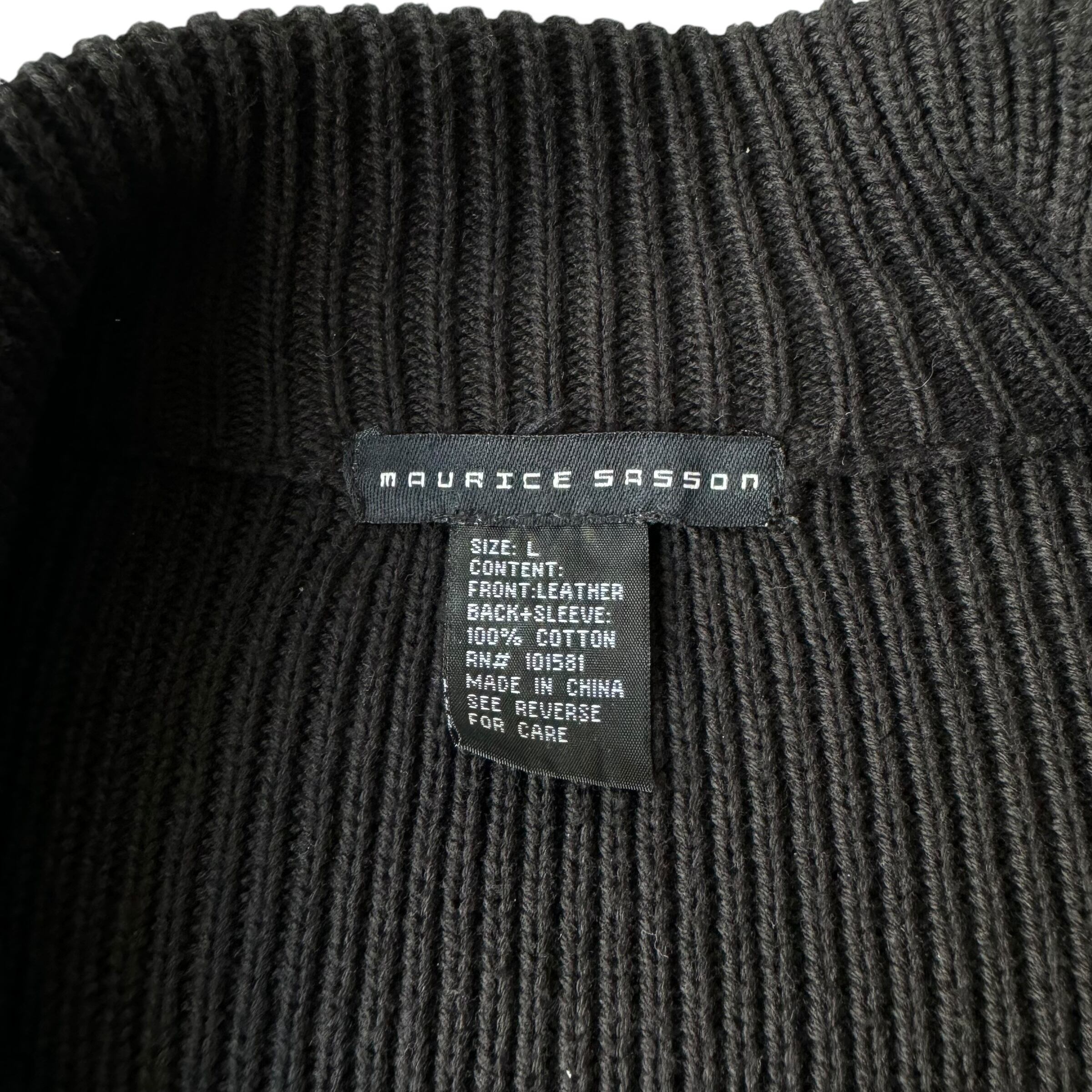 ♾MAURICE SASSON♾ leather combination studs design double zipped detail drivers knit sizeL