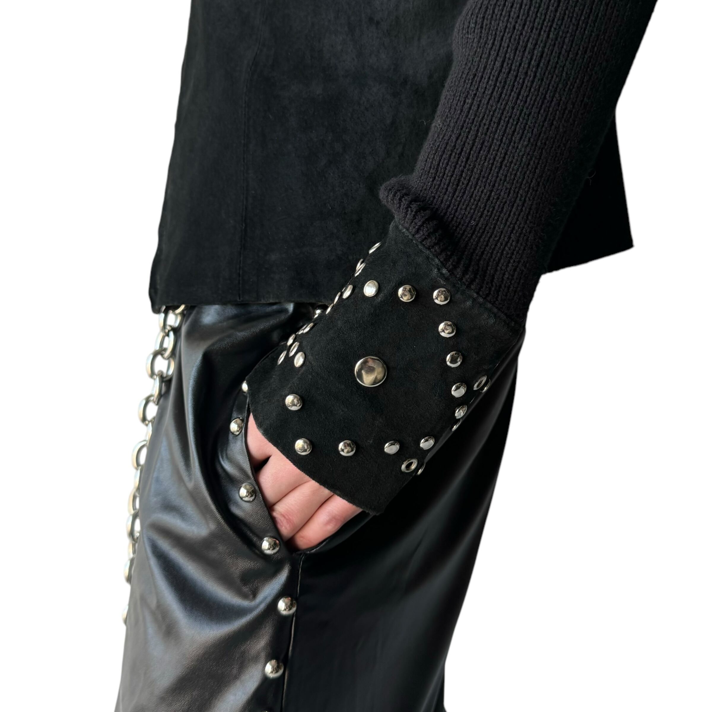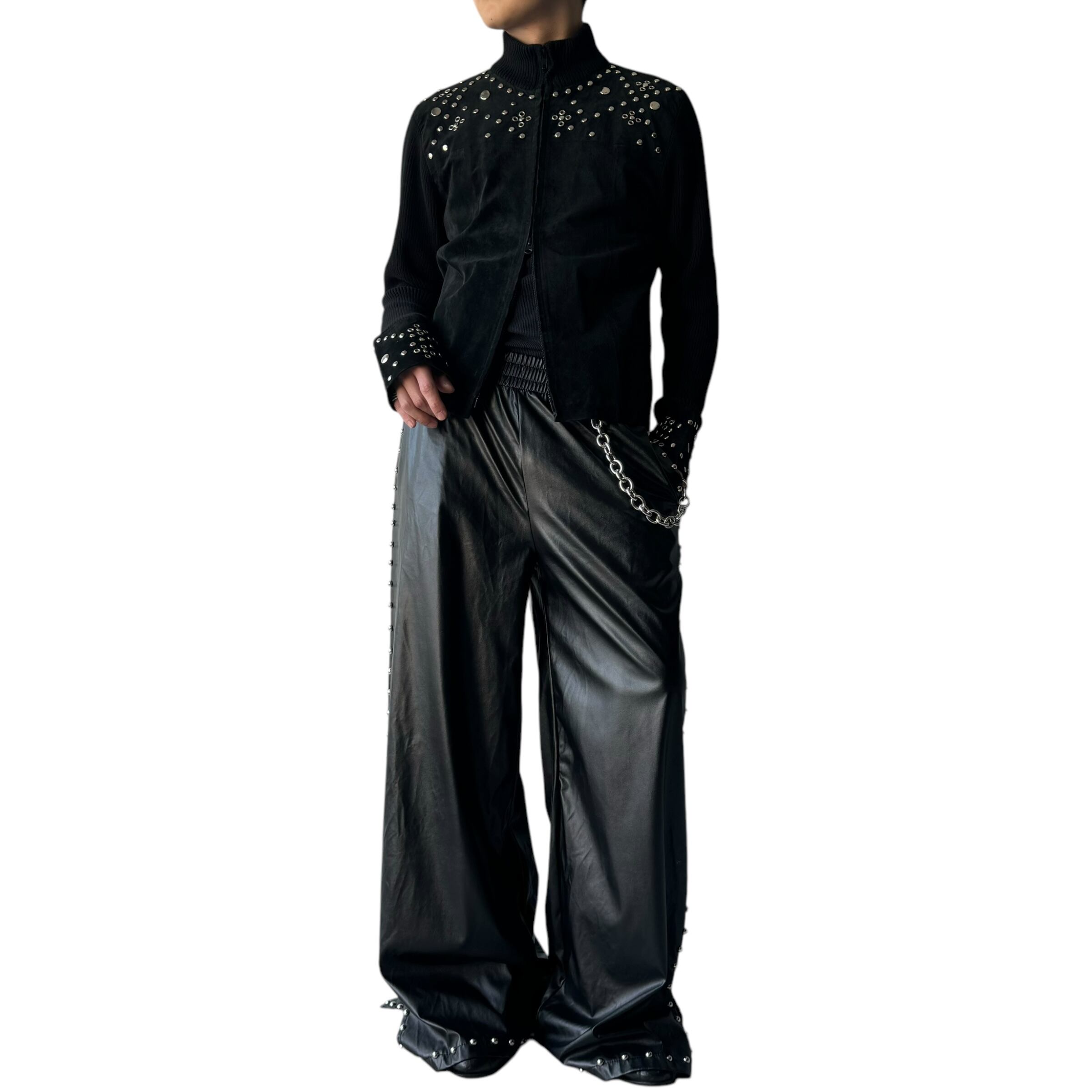 ヨーク部分と袖にみっちり施されたスタッズとハトメのギラギラで存在感ある装飾がいいアクセントに◎