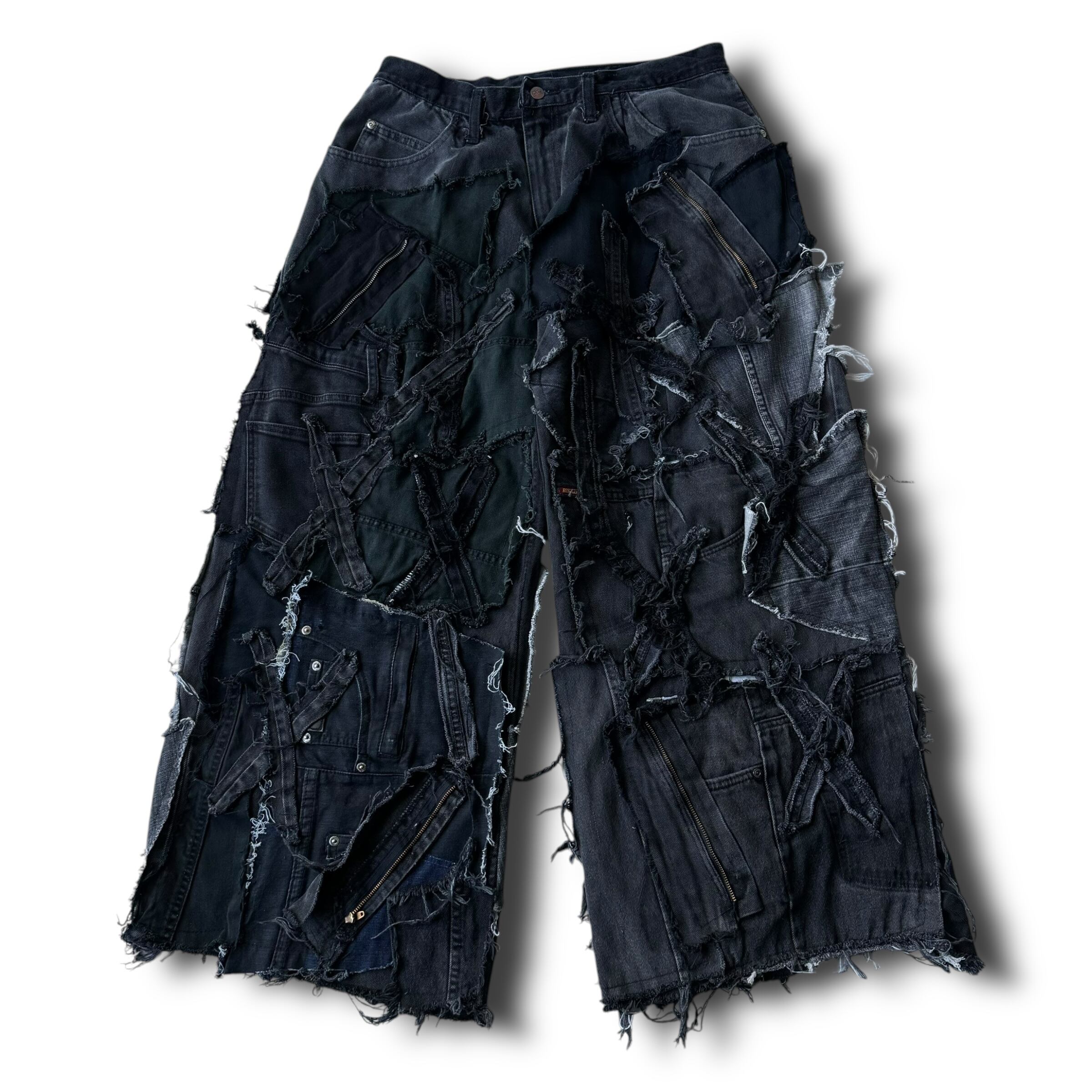 ♾REMAKE DESIGN USED♾ reconstruction custom mega wide black denim pants
