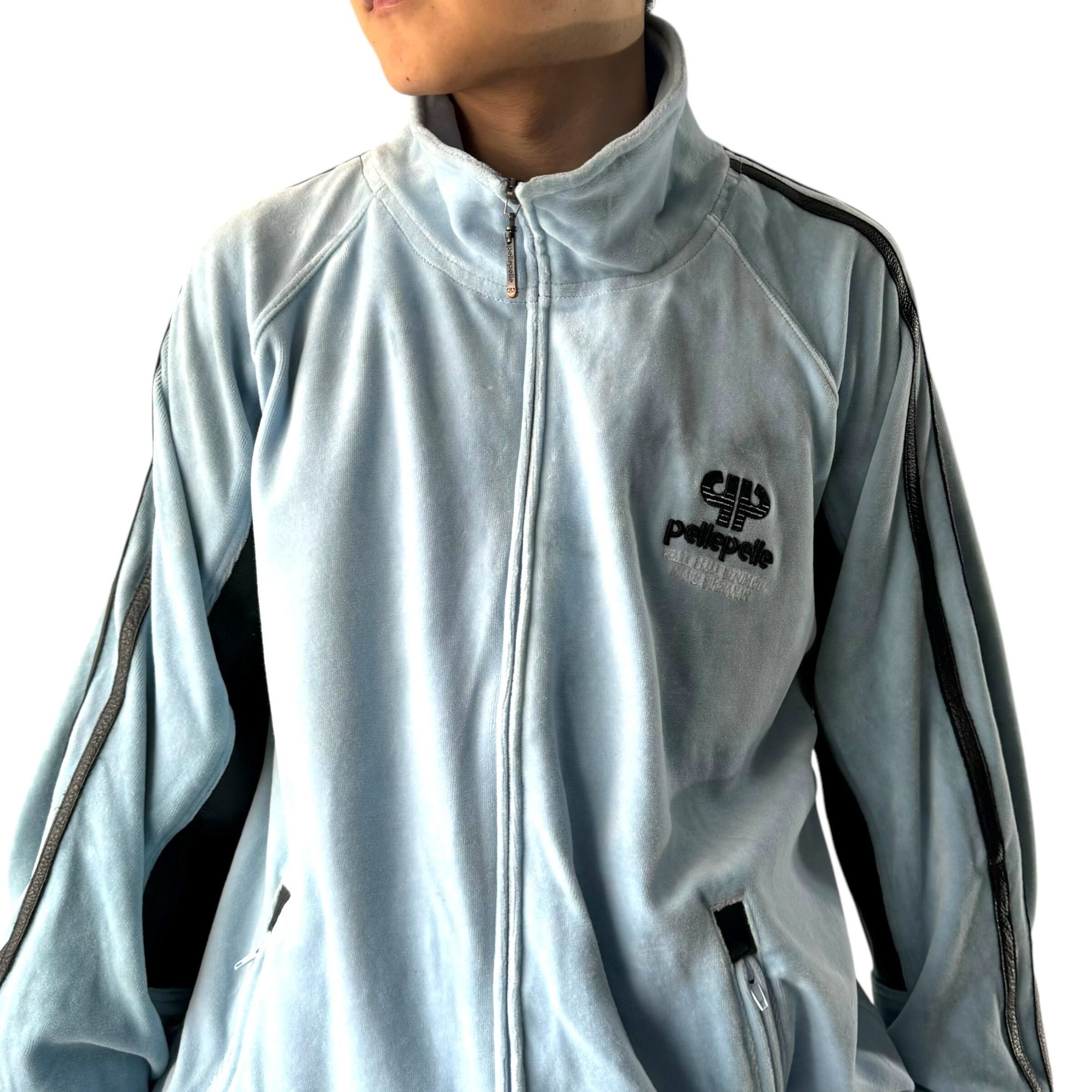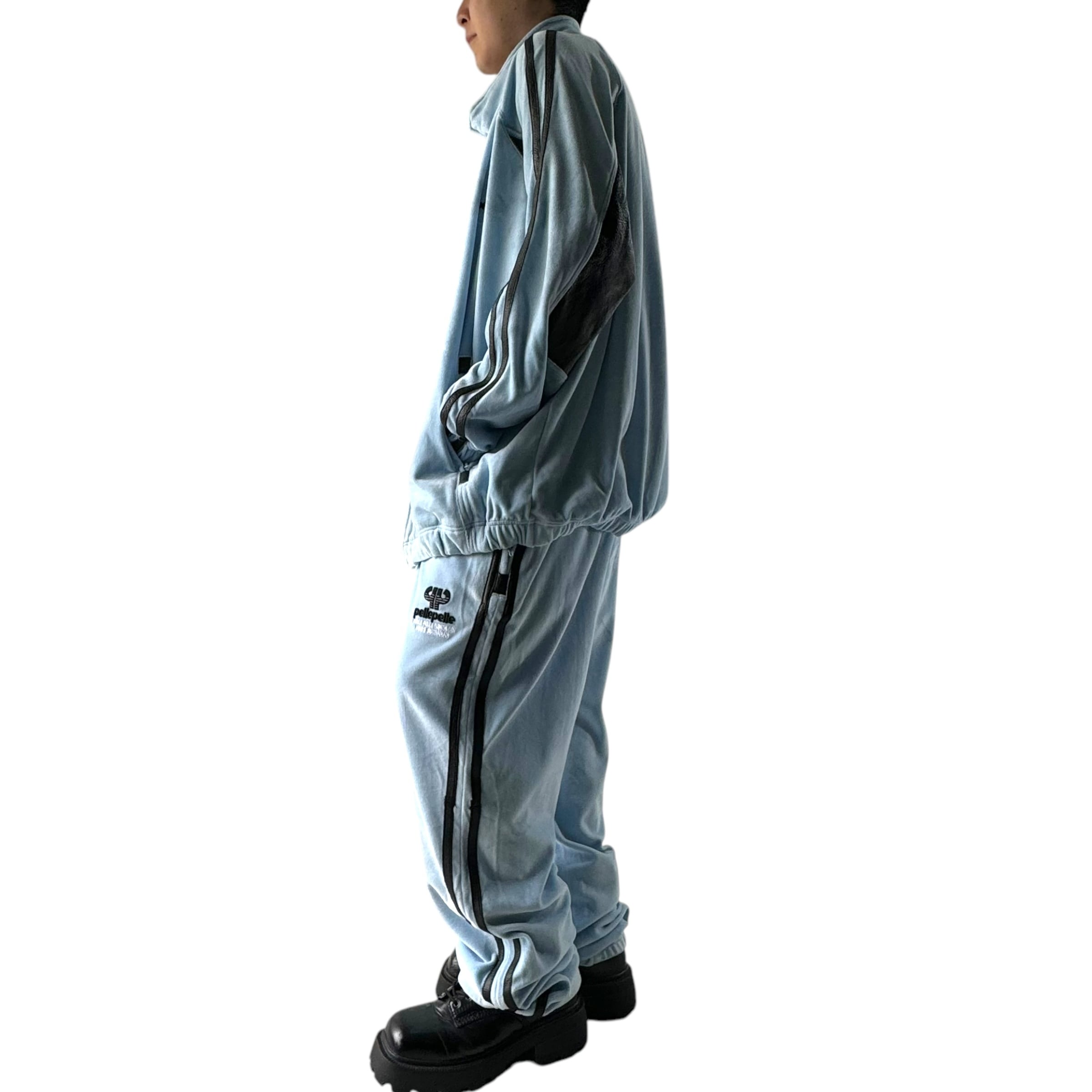 目を引くパステルブルーがステキなベロア素材のトラックセットアップ✨️