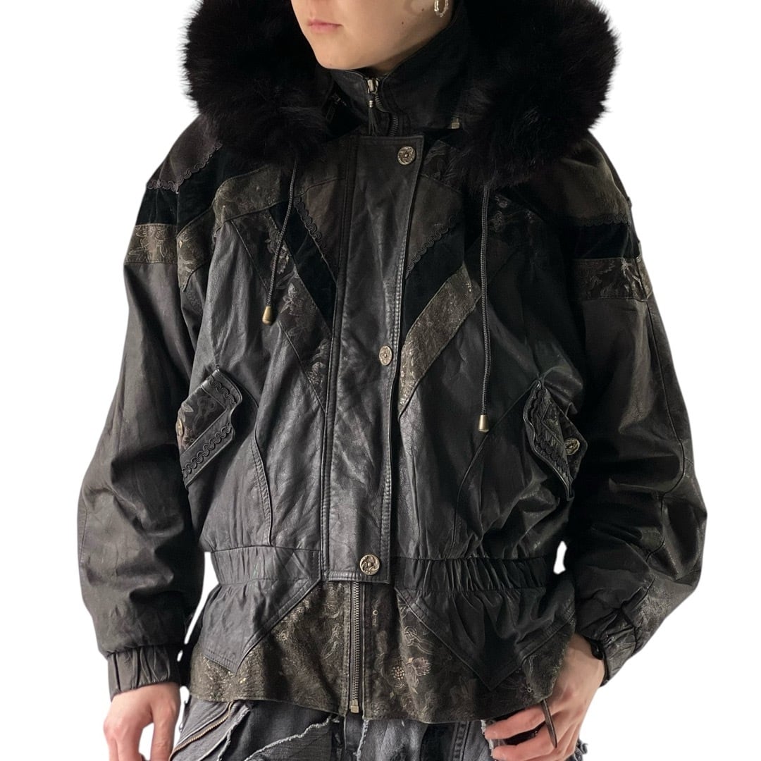 【G-Ⅲ】 Switching Hooded leather jacket SIZE: L