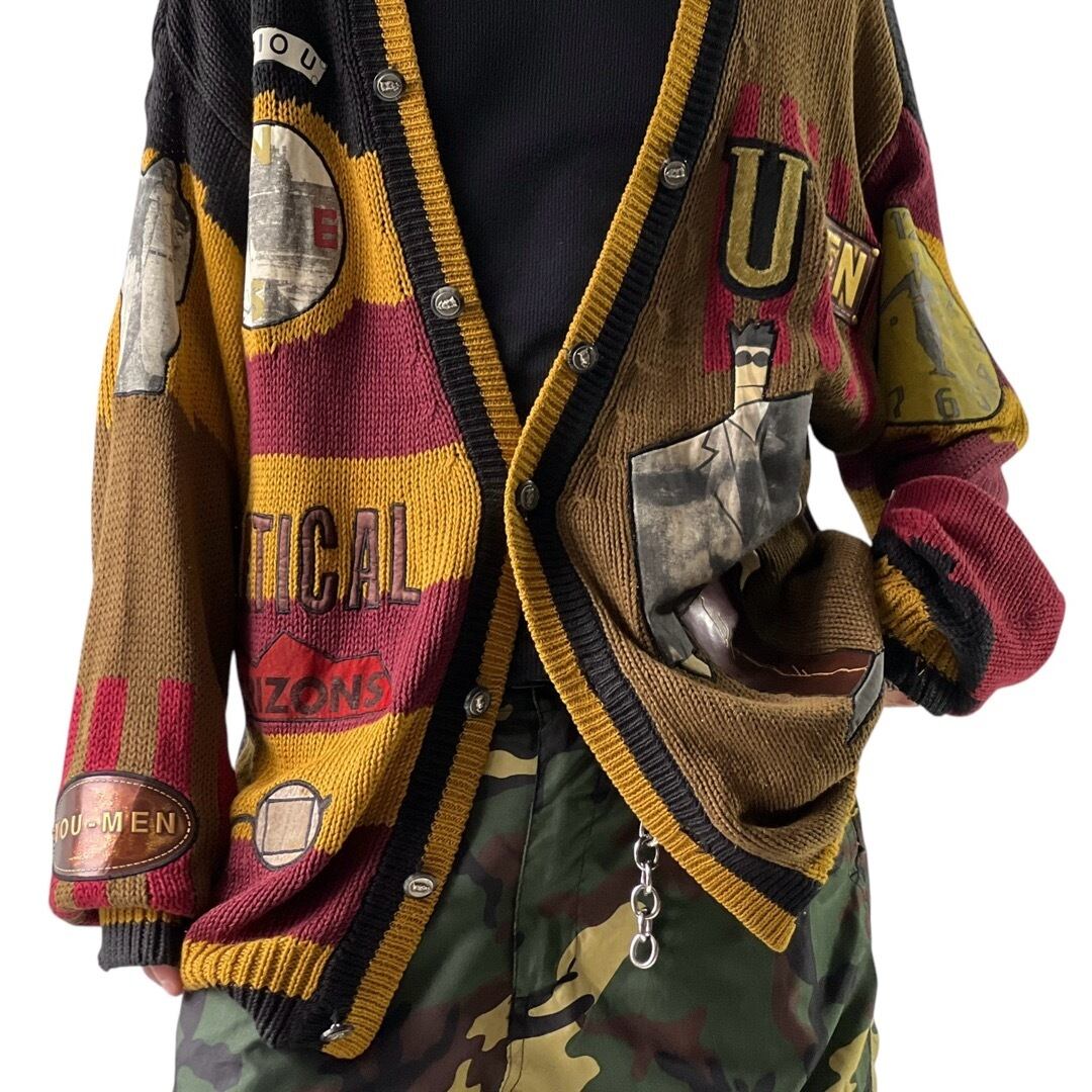【UMEN STUDIO】 80's vintage patchwork knitting art design cardigan