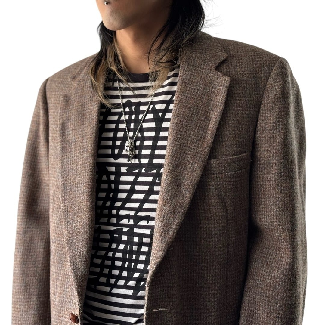 ツイードウールのジャケット自体を古着で探すと小さい個体ばかりですが、今っぽいノリで着用できる素晴らしいシルエットとサイジングッ✨