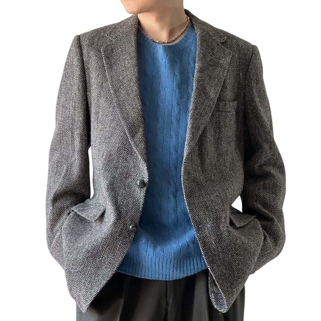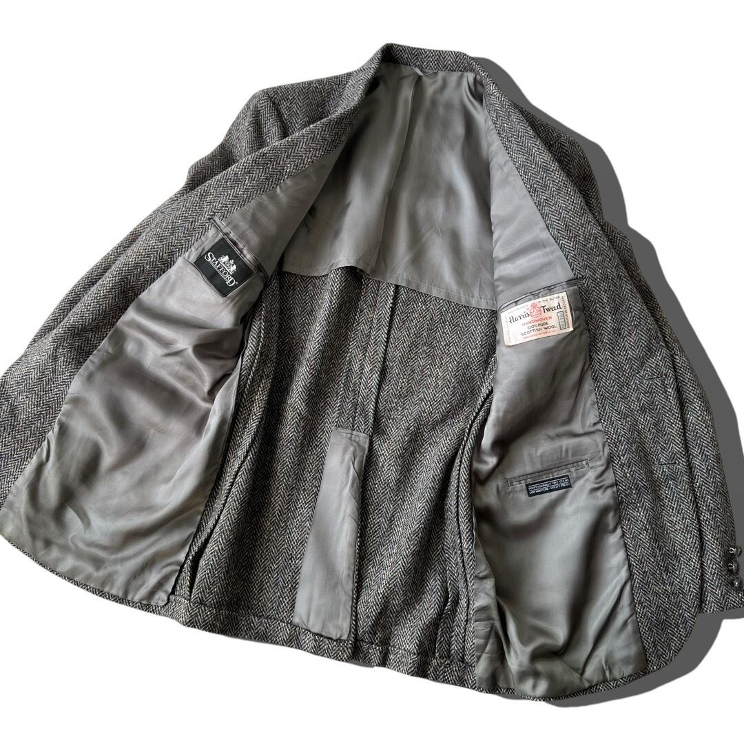 【STAFFORD -OLD HARRIS TWEED-】 "HAND WOVEN" Vintage Wool tweed Tailored Jacket / Fabric made in Scotland