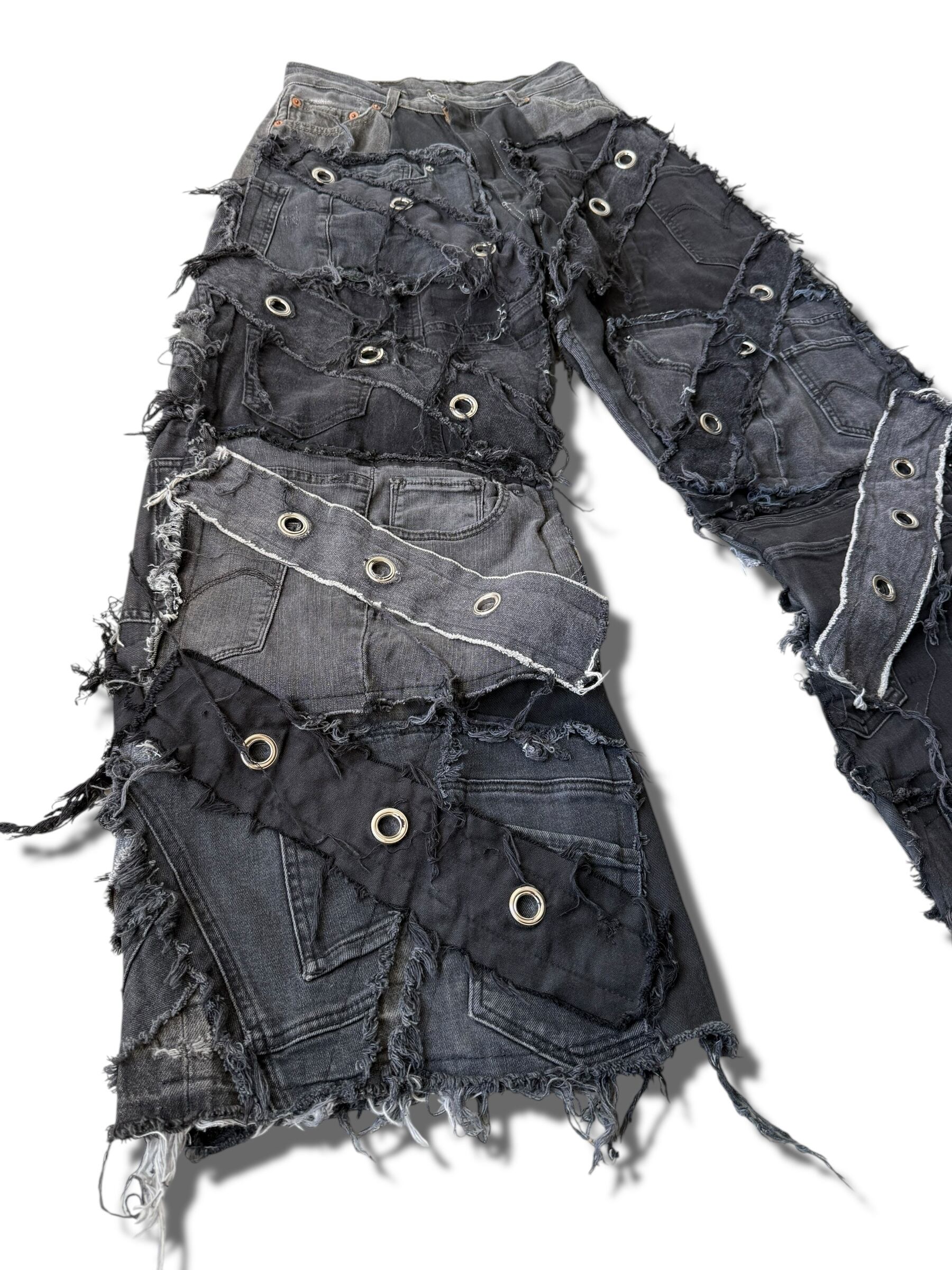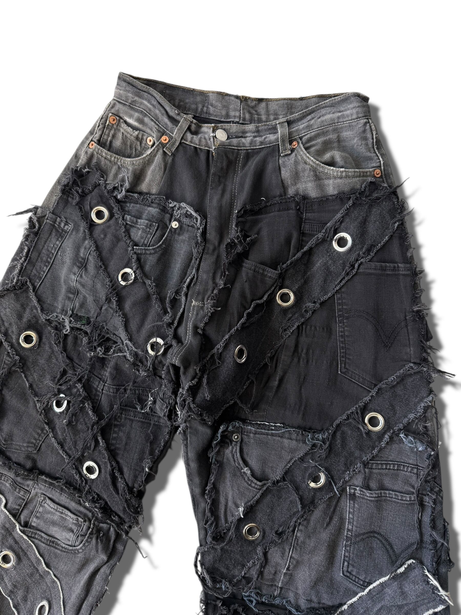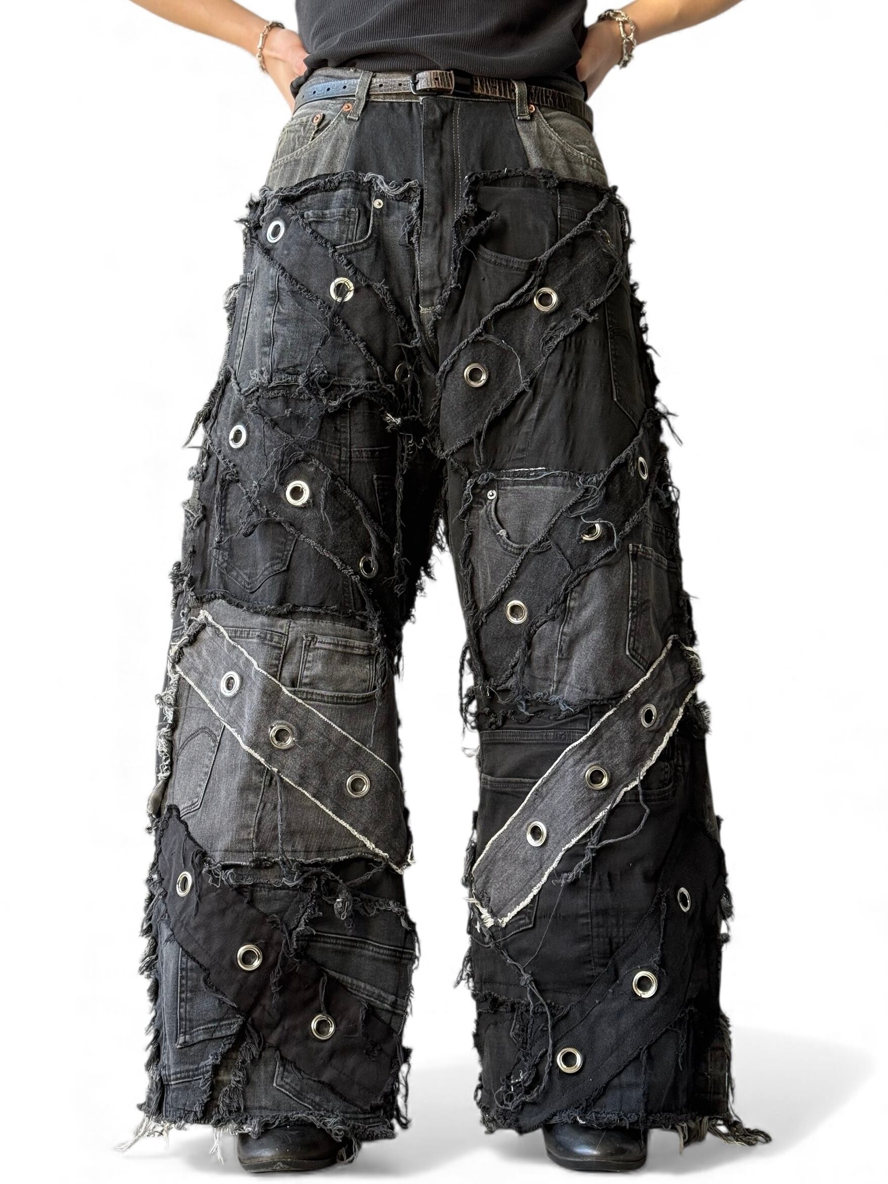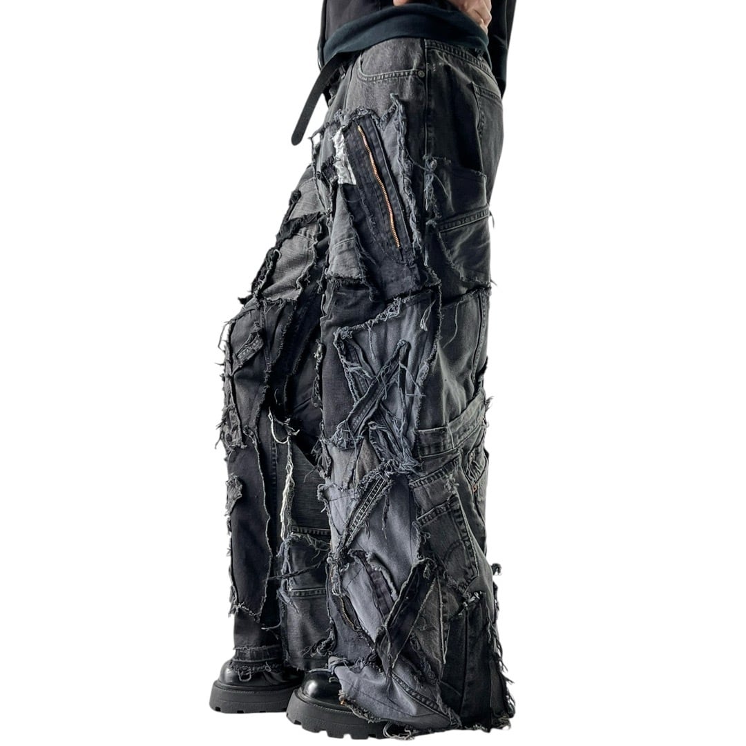 【REMAKE DESIGN USED】 Reconstruction Custom wide black denim pants