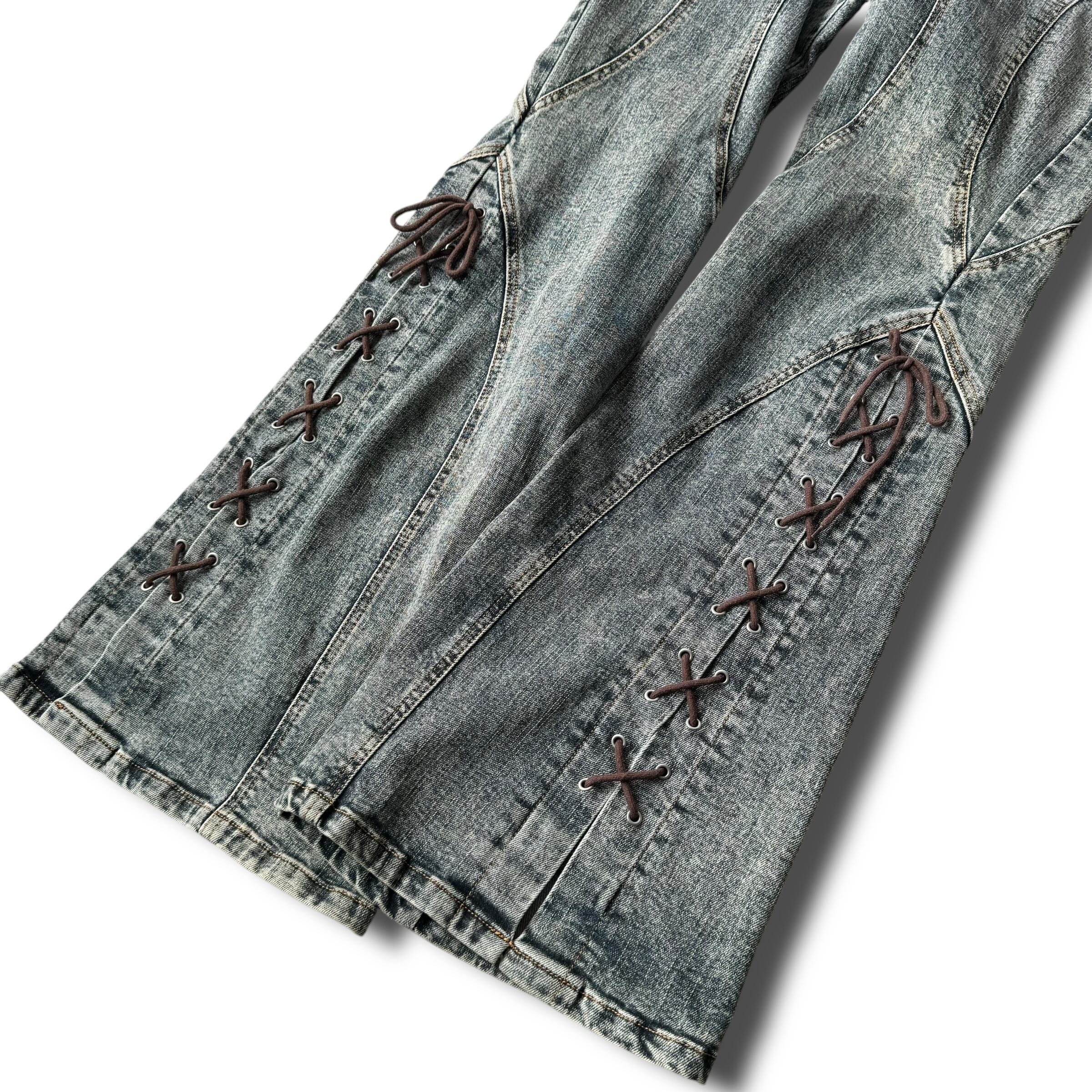 ♾️ genlne playchchess ♾️ Lace-up design flare denim
