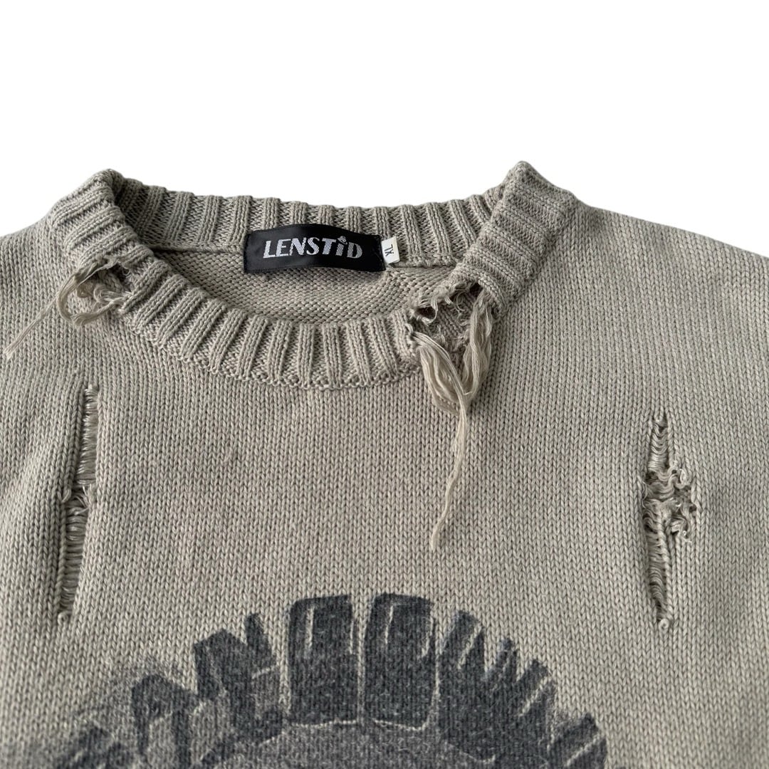 ダメージ加工が超いいアクセントに、パンチの効かせたデザインがクールなオーバーニット‼️