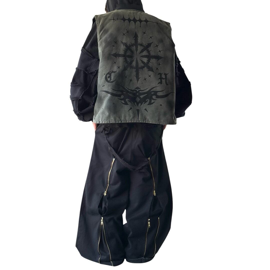 エイジング感のあるグリーンが雰囲気抜群で両面にハンドペイント、ステッチによるカスタムを施す事により無二で存在感あるデザインが目を惹く仕上がりに✨️