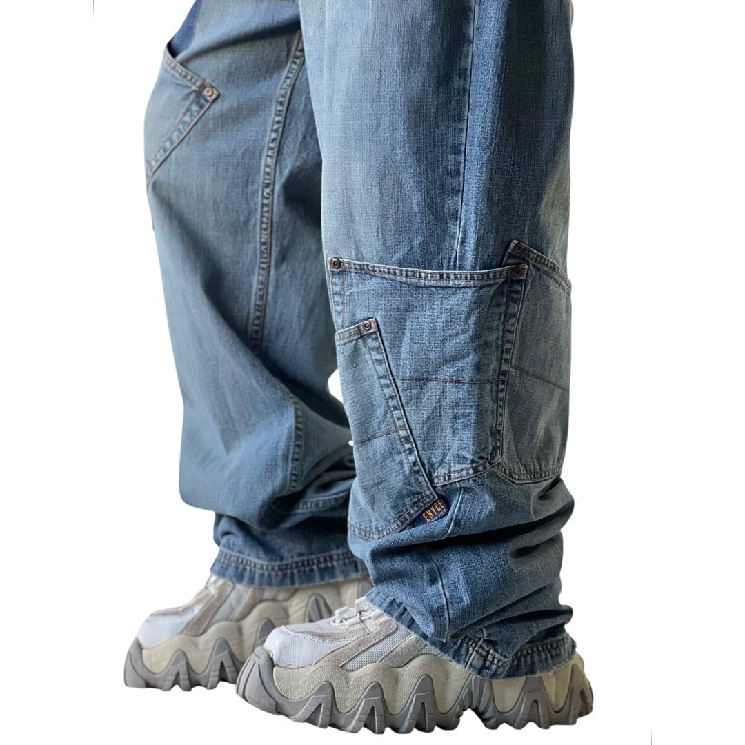 【90s ENYCE】Patchwork Pocket Stitch Design Wide Denim pants