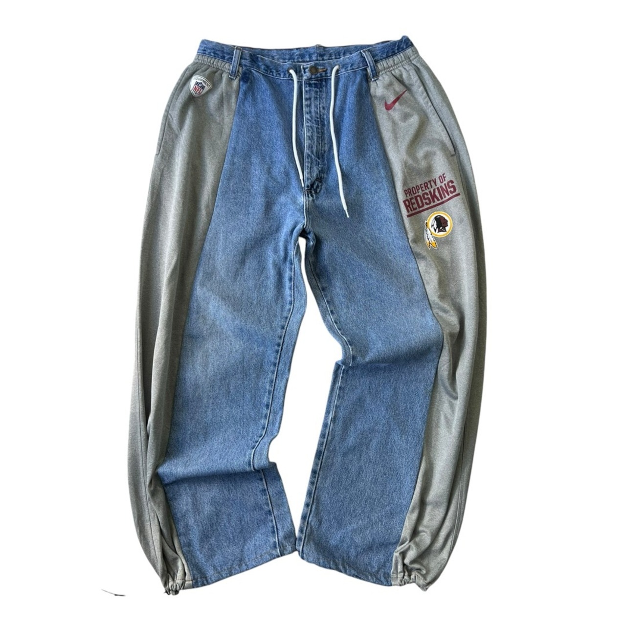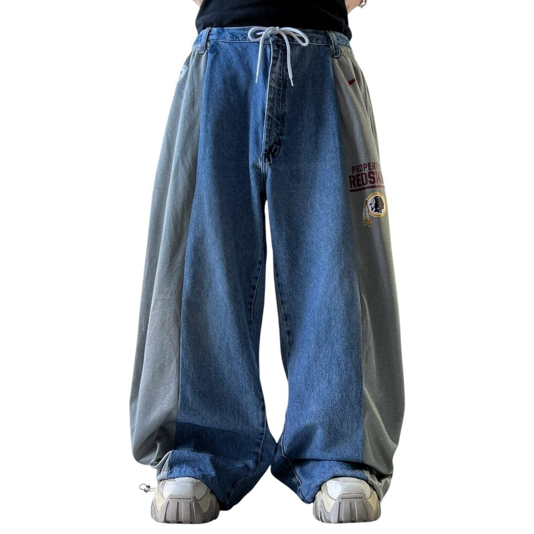 【Remake Design】Sweat docking Drawstring wide denim pants