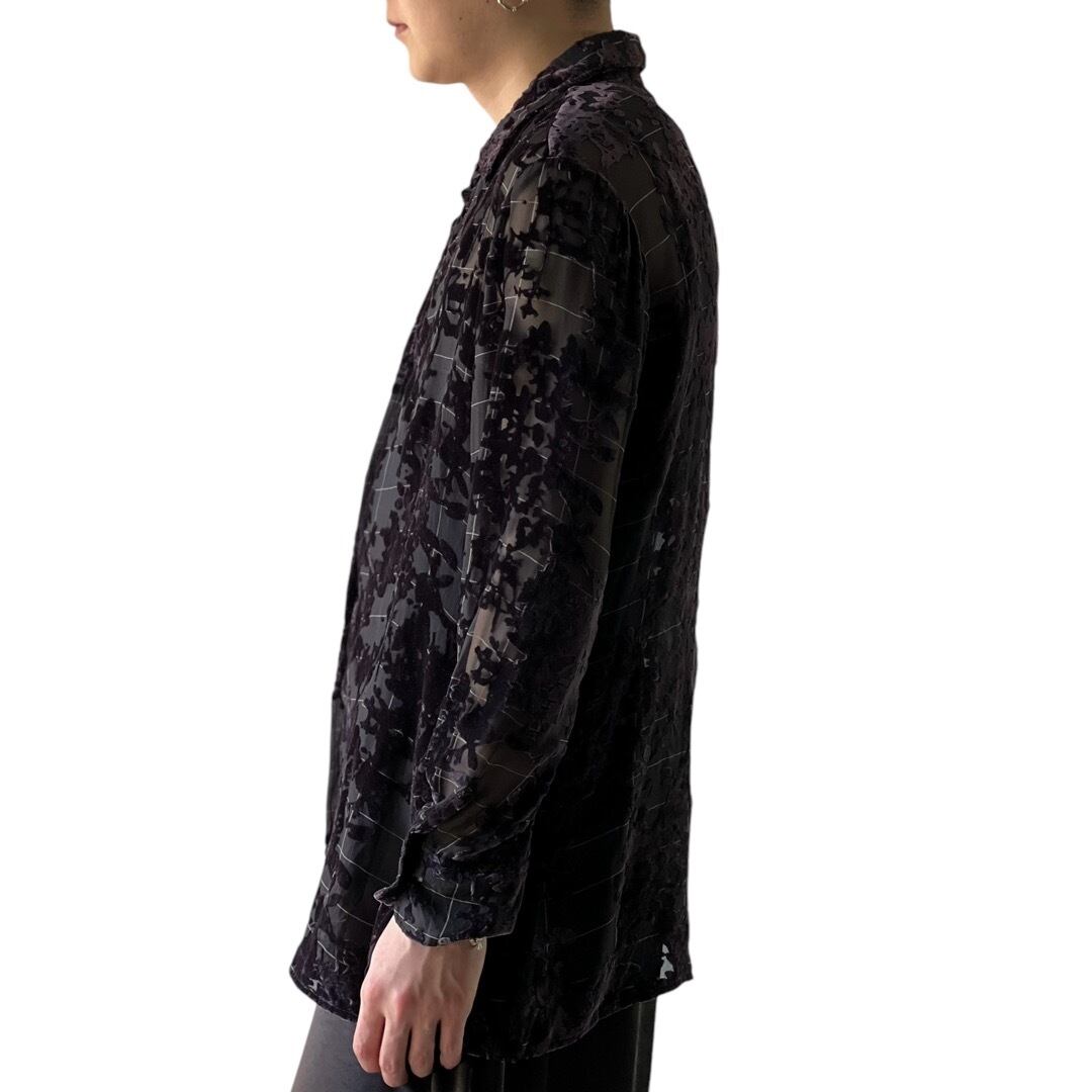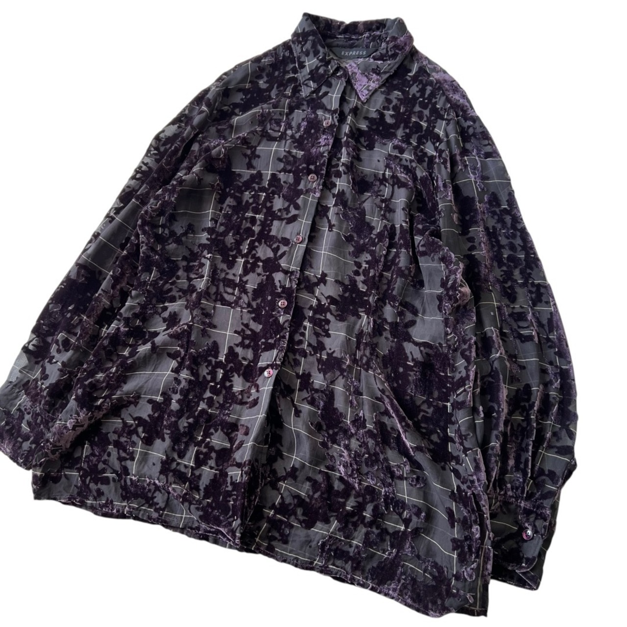 【EXPRESS】Floral pattern Rayon Silk velours sheer shirt