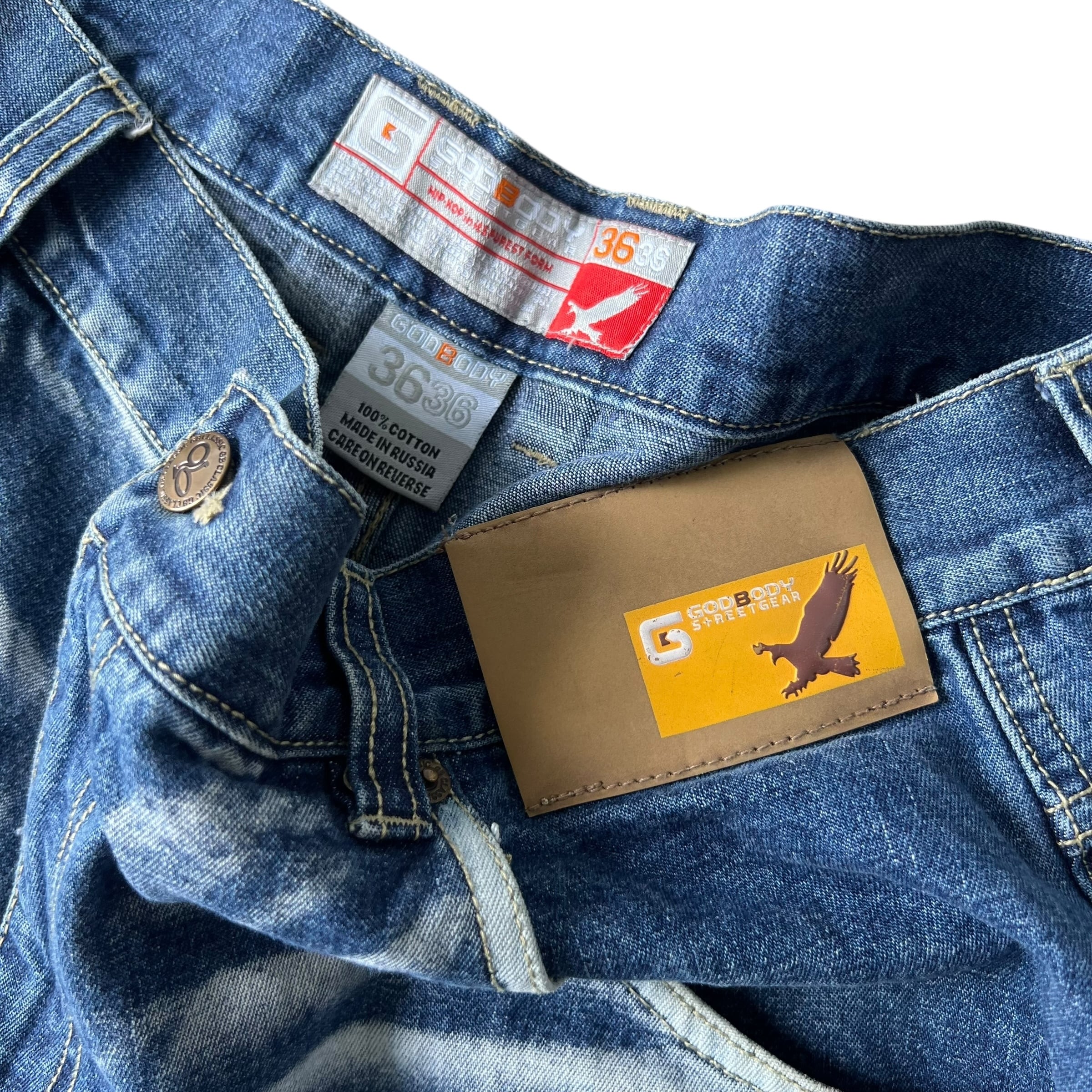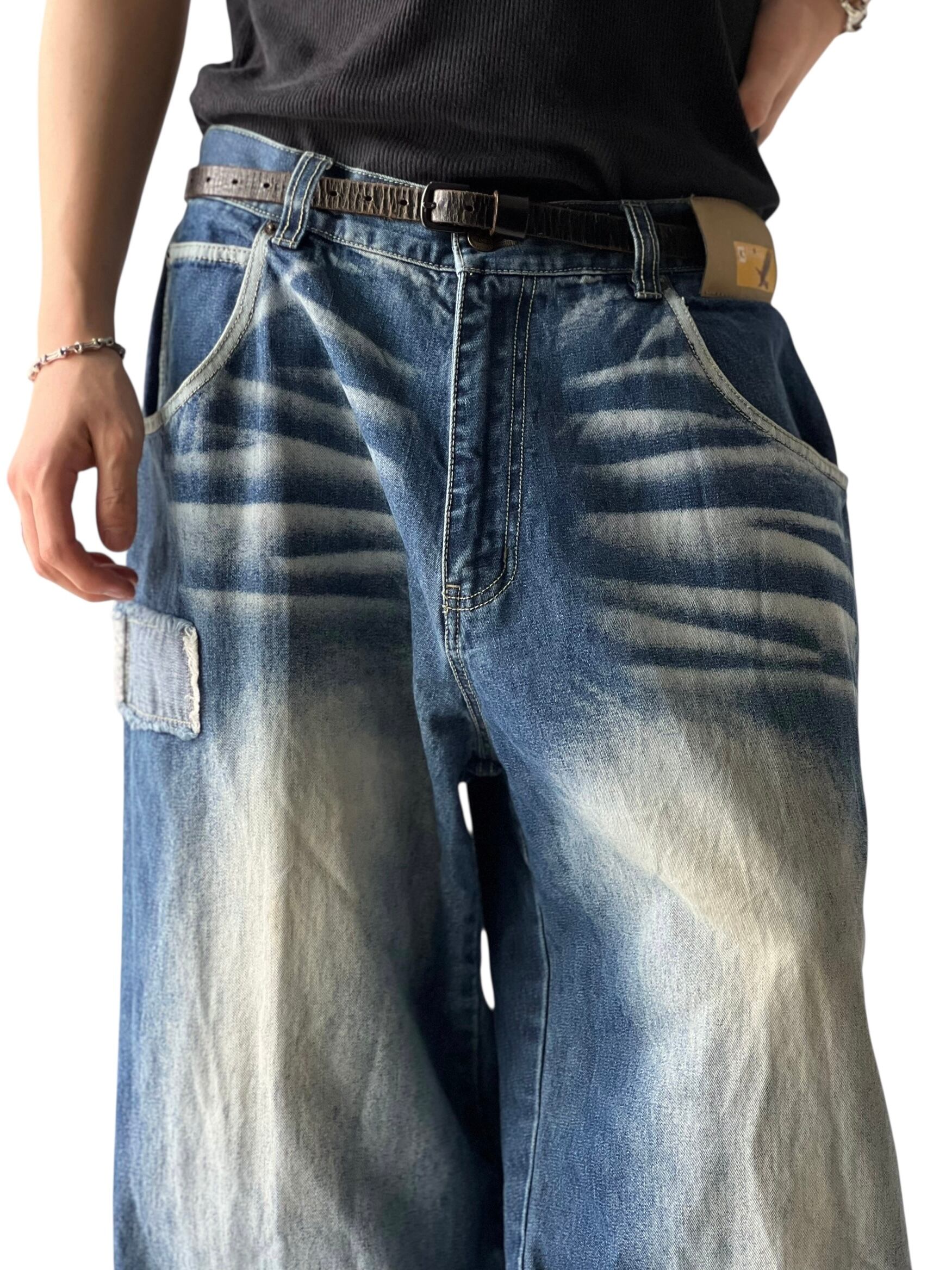【GOD BODY】Demonic beard aging process Wide denim pants