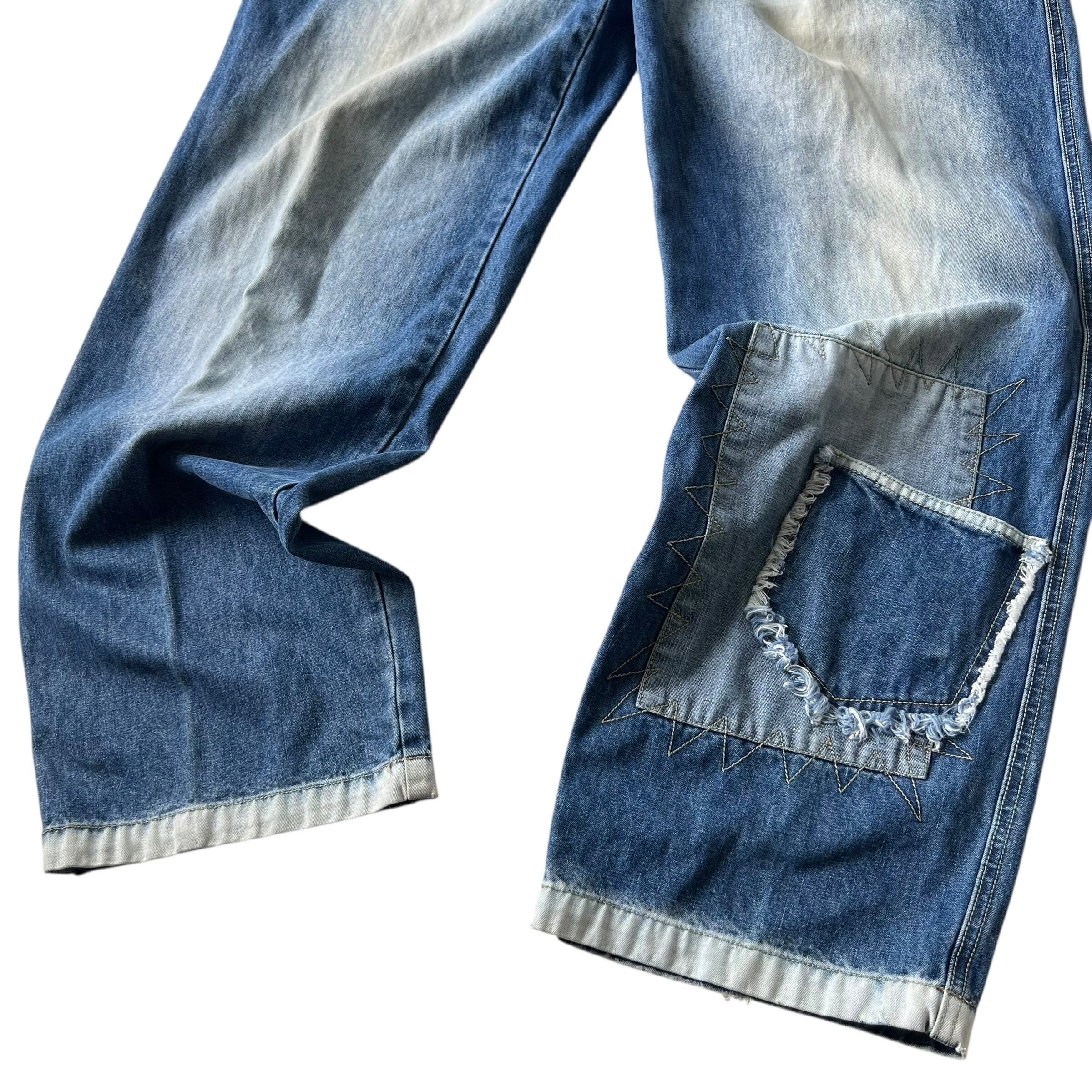ブルーデニムで、パッチワークなどディテールも効いており、、1本でどんなシーンでも映える一品❤️