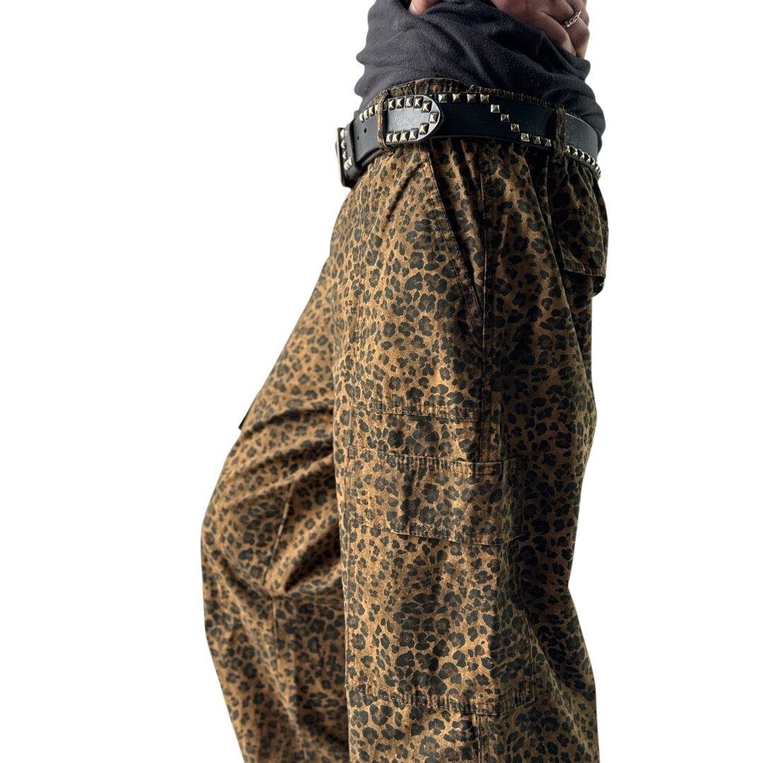♾No BoUNDARIES ♾ Cargo detail wide straight silhouette Leopard pants size M