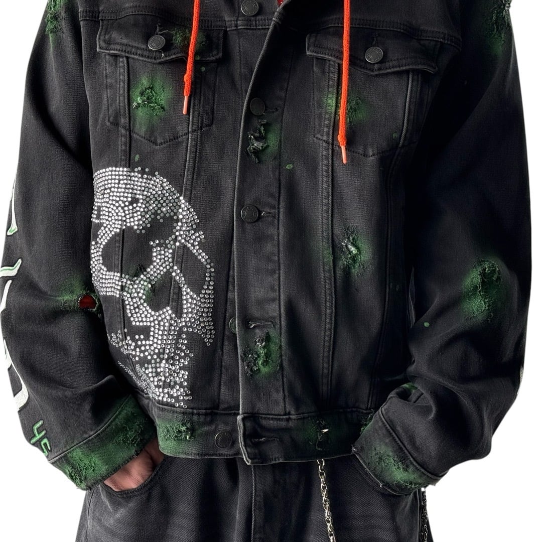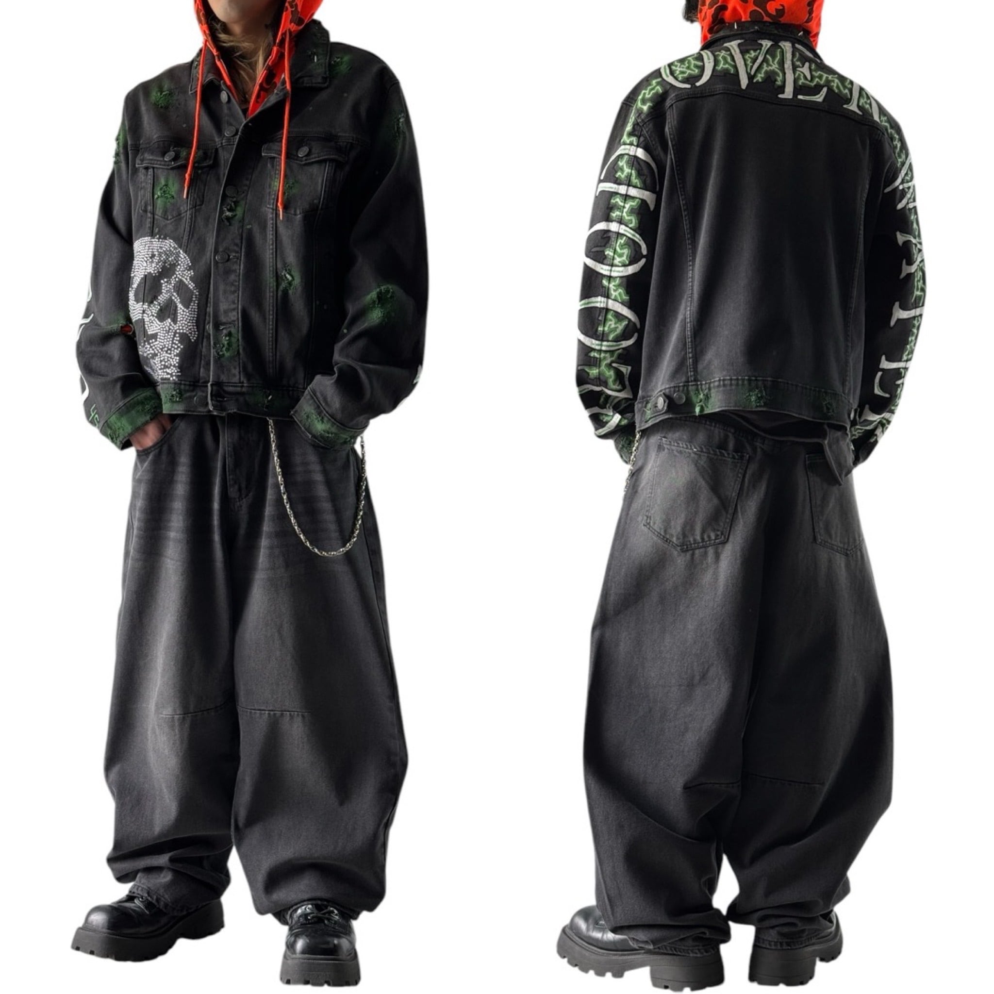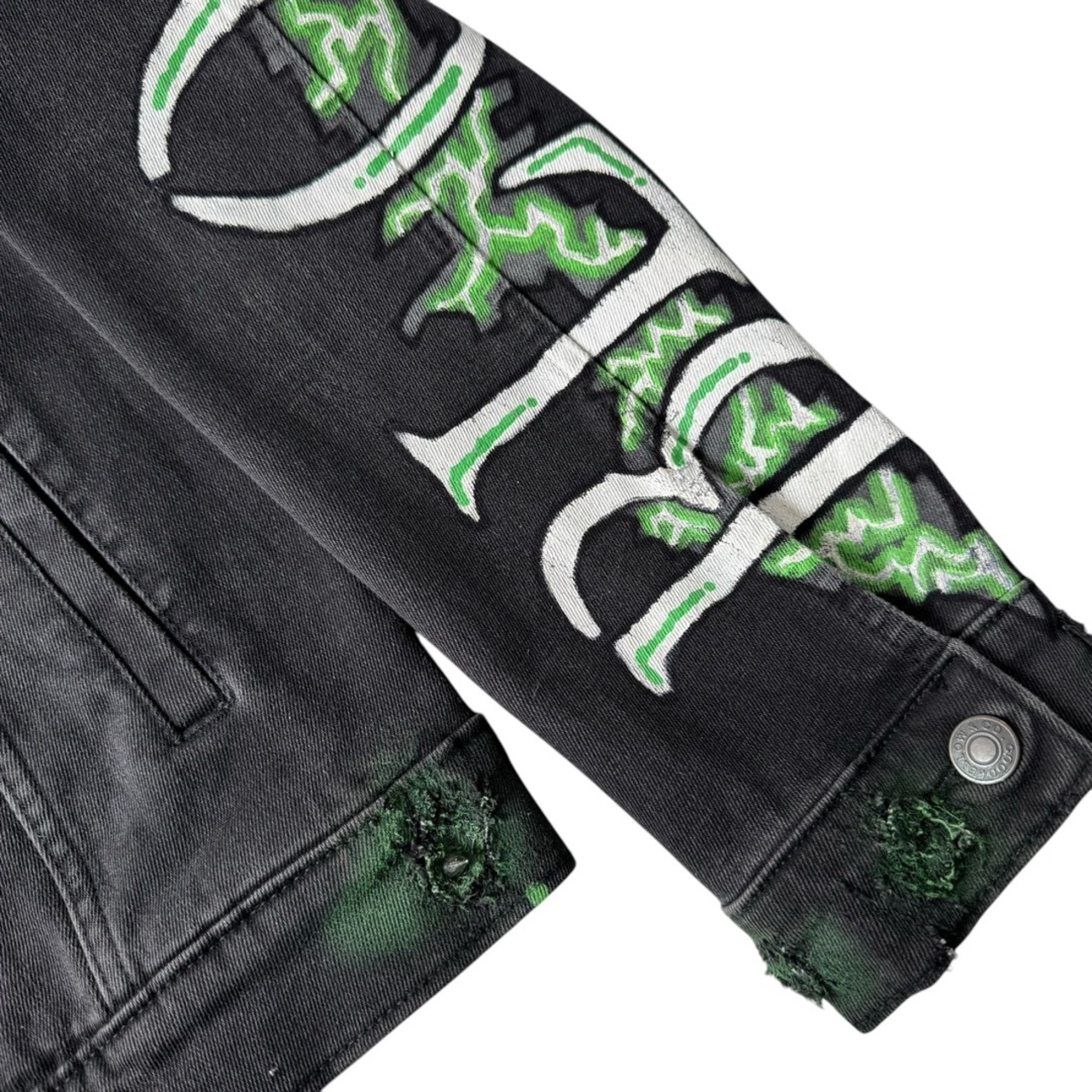 攻撃的なダメージやハンドペイントカスタムデザインが無二でアートなバイブスが超クールなデニムトラッカージャケット‼️