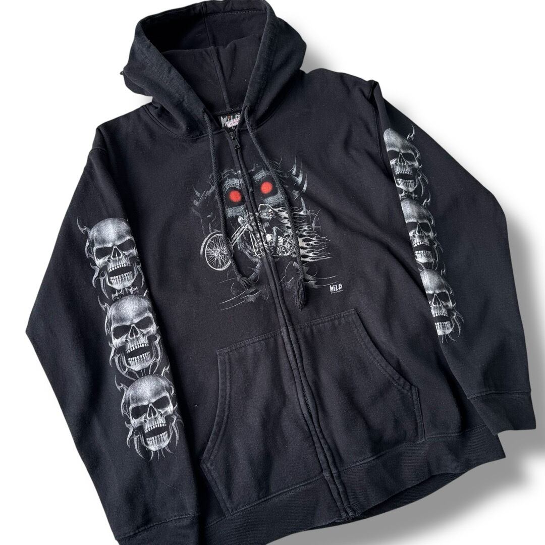 ♾ WILD ♾ skull rider print zipup hoodie size M