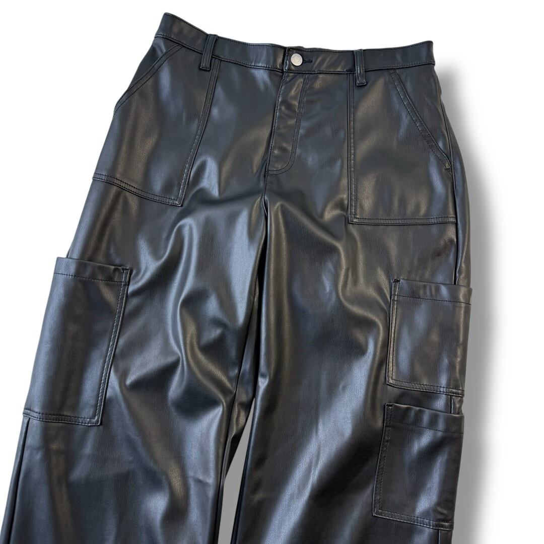 ♾No BoUNDARIES♾ design cargo detail pvc leather wide pants sizeL