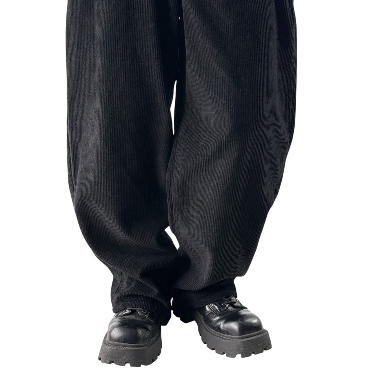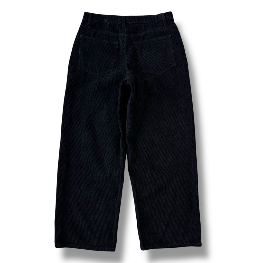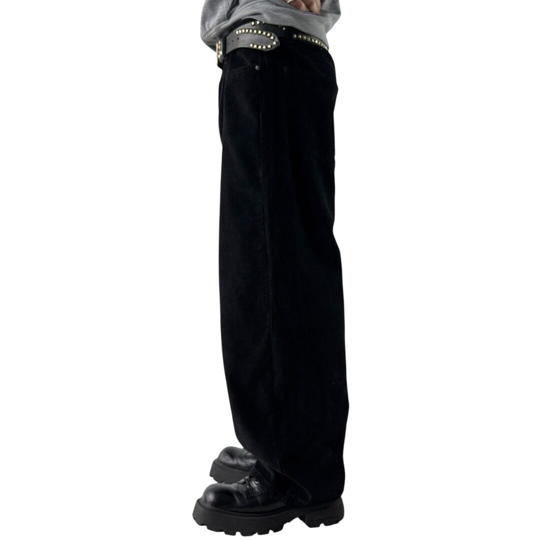 wide buggy silhouette black corduroy pants
