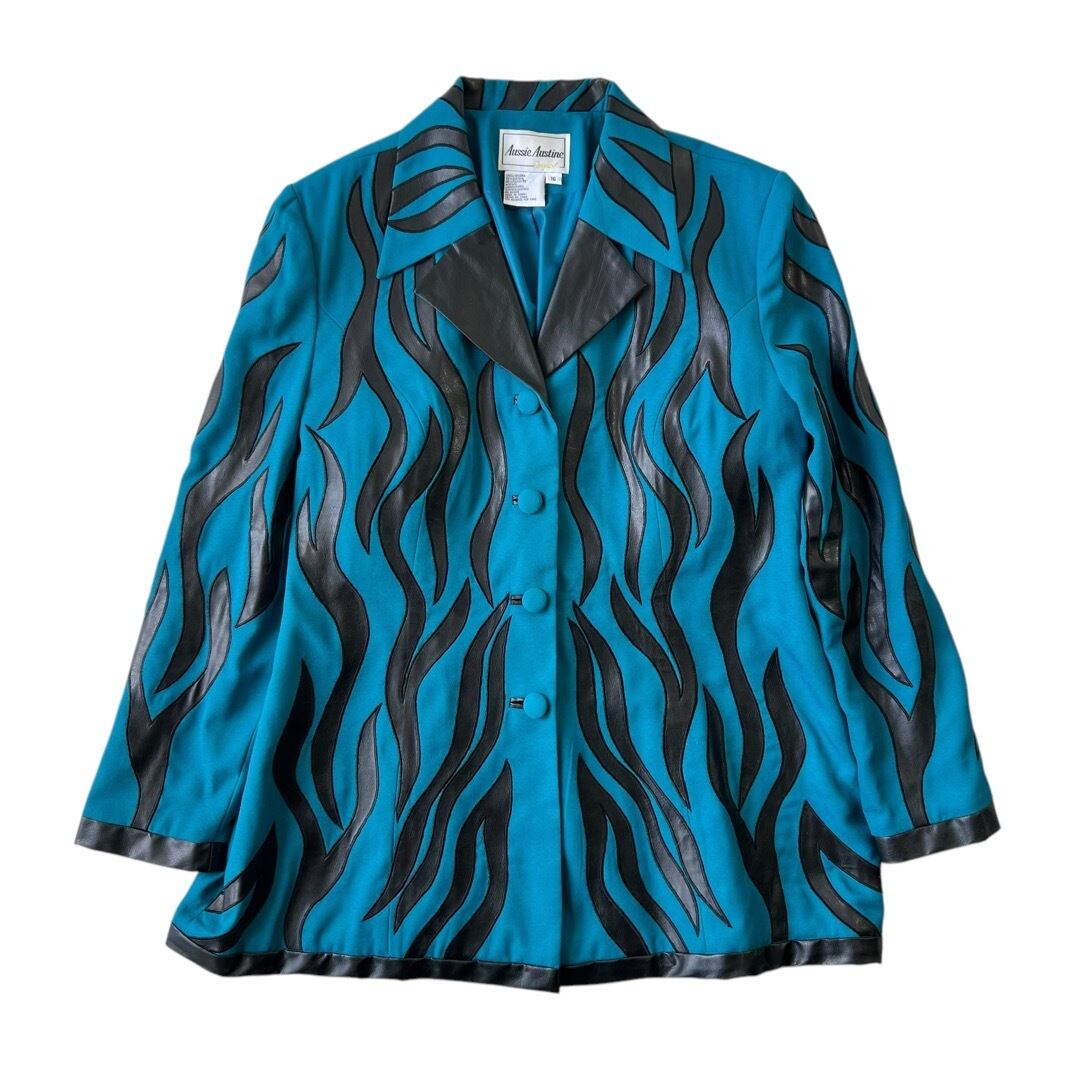 パンチの効いたカラーリングにレザーパッチでファイヤーパターンのように入った総柄。