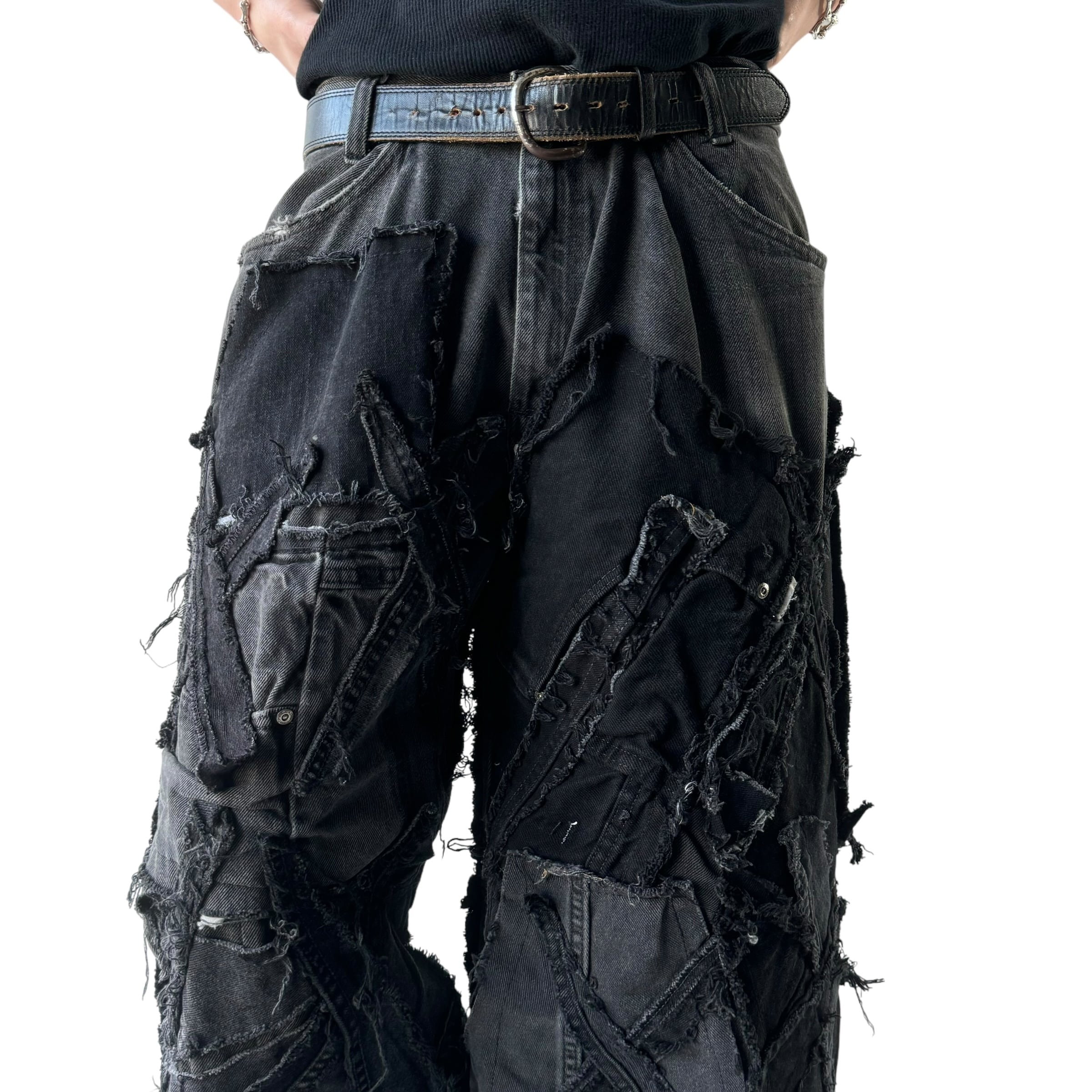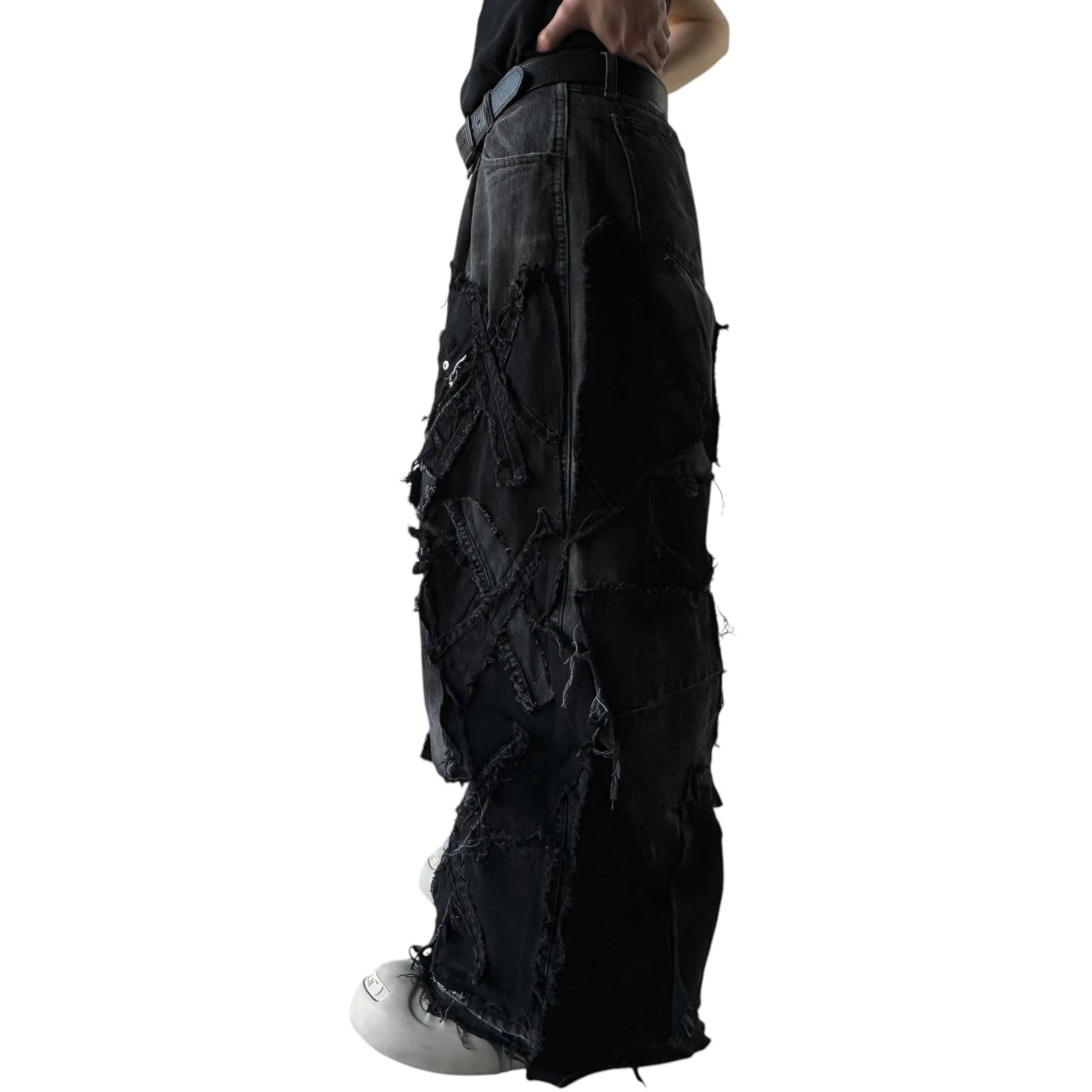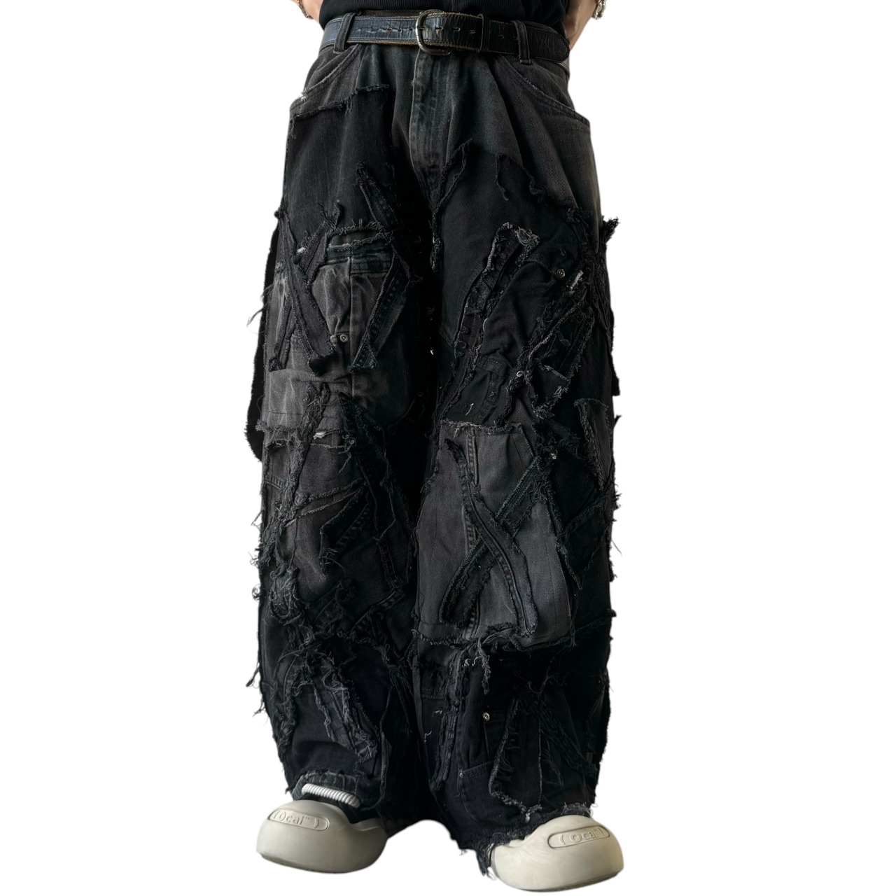 【REMAKE DESIGN USED】 reconstruction custom mega wide black denim pants