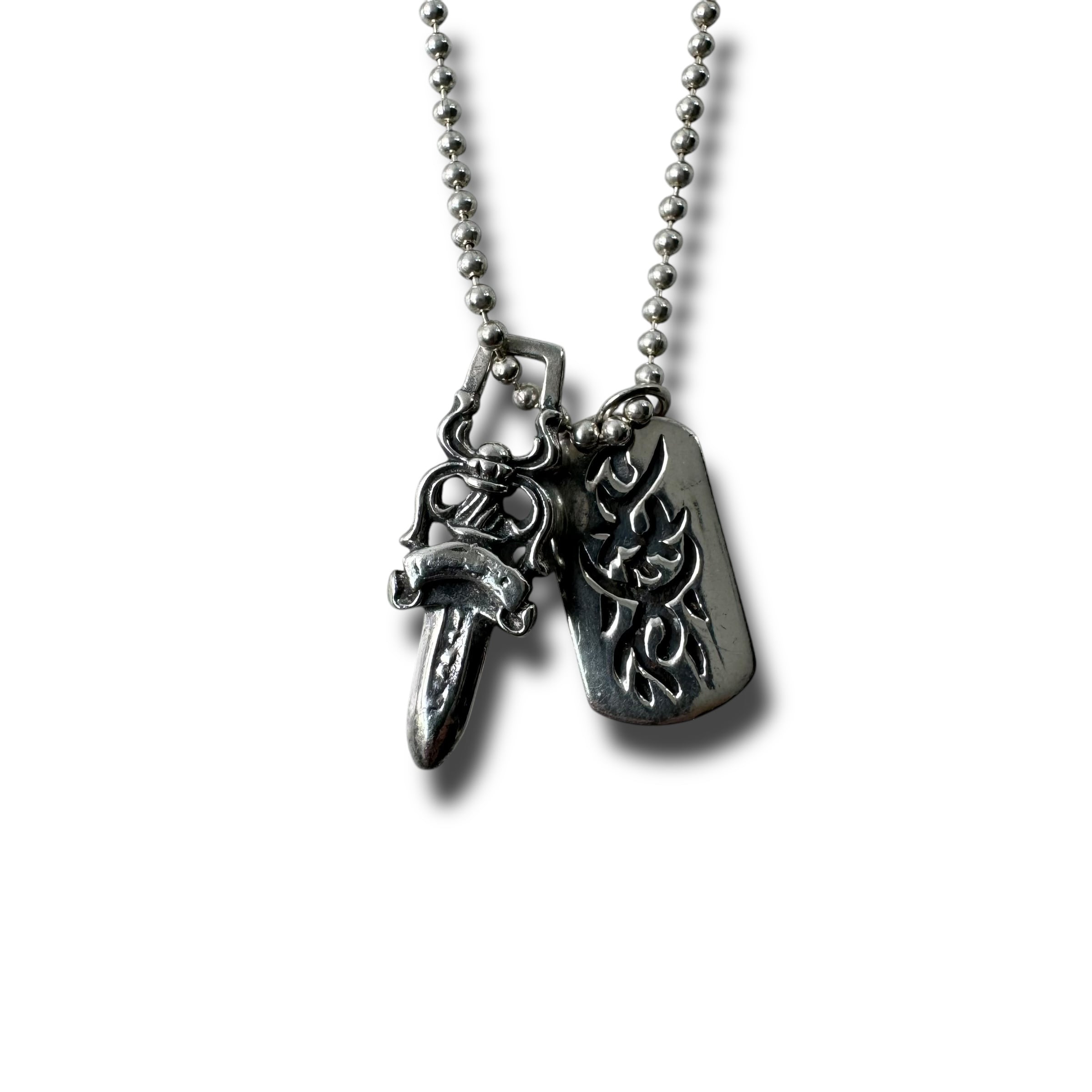 ダガーと相性抜群のドッグタグの2つのチャームがクールなダブルトップデザインネックレス✨️