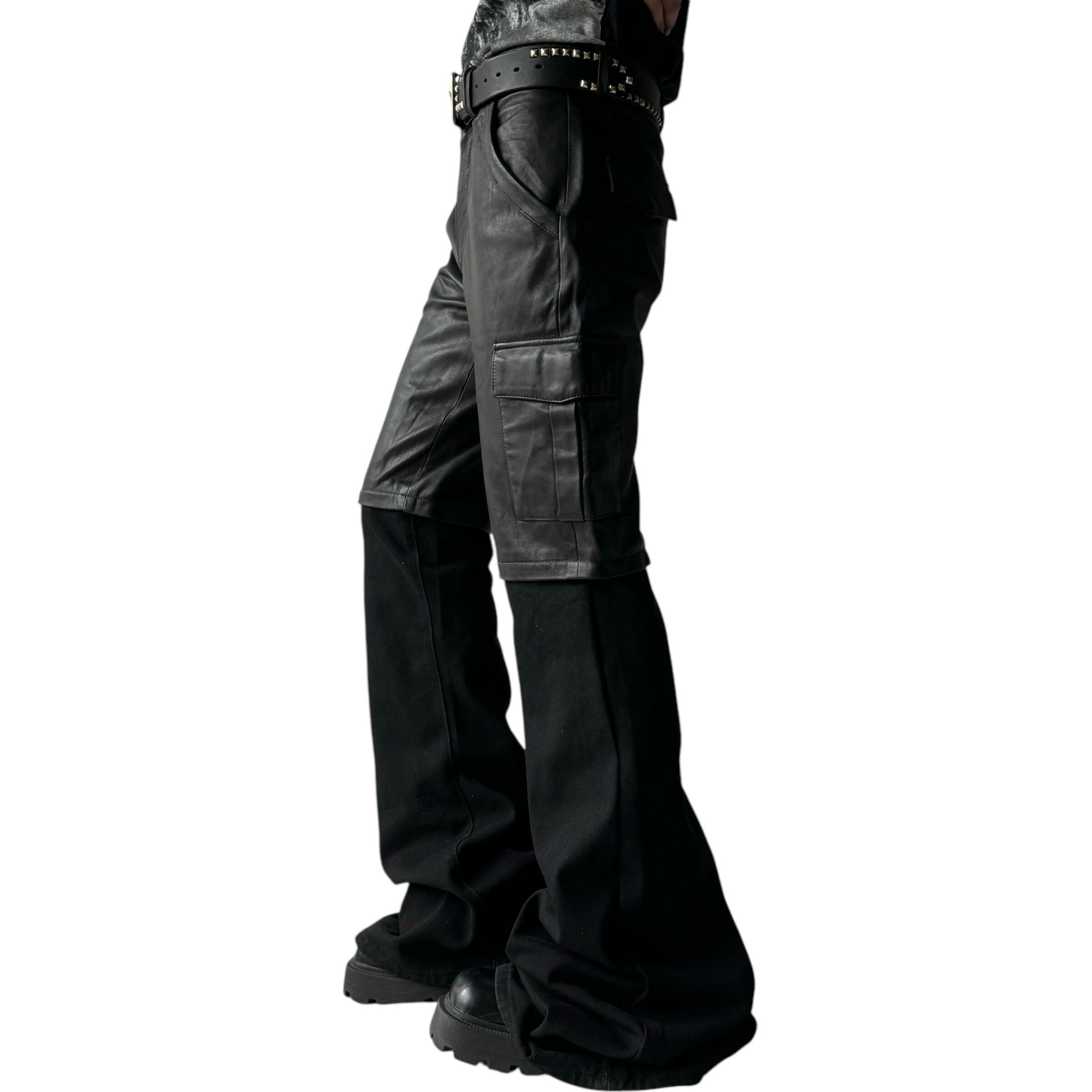 ♾remake design used♾ leather switching fake layered remake custom design mega flared pants