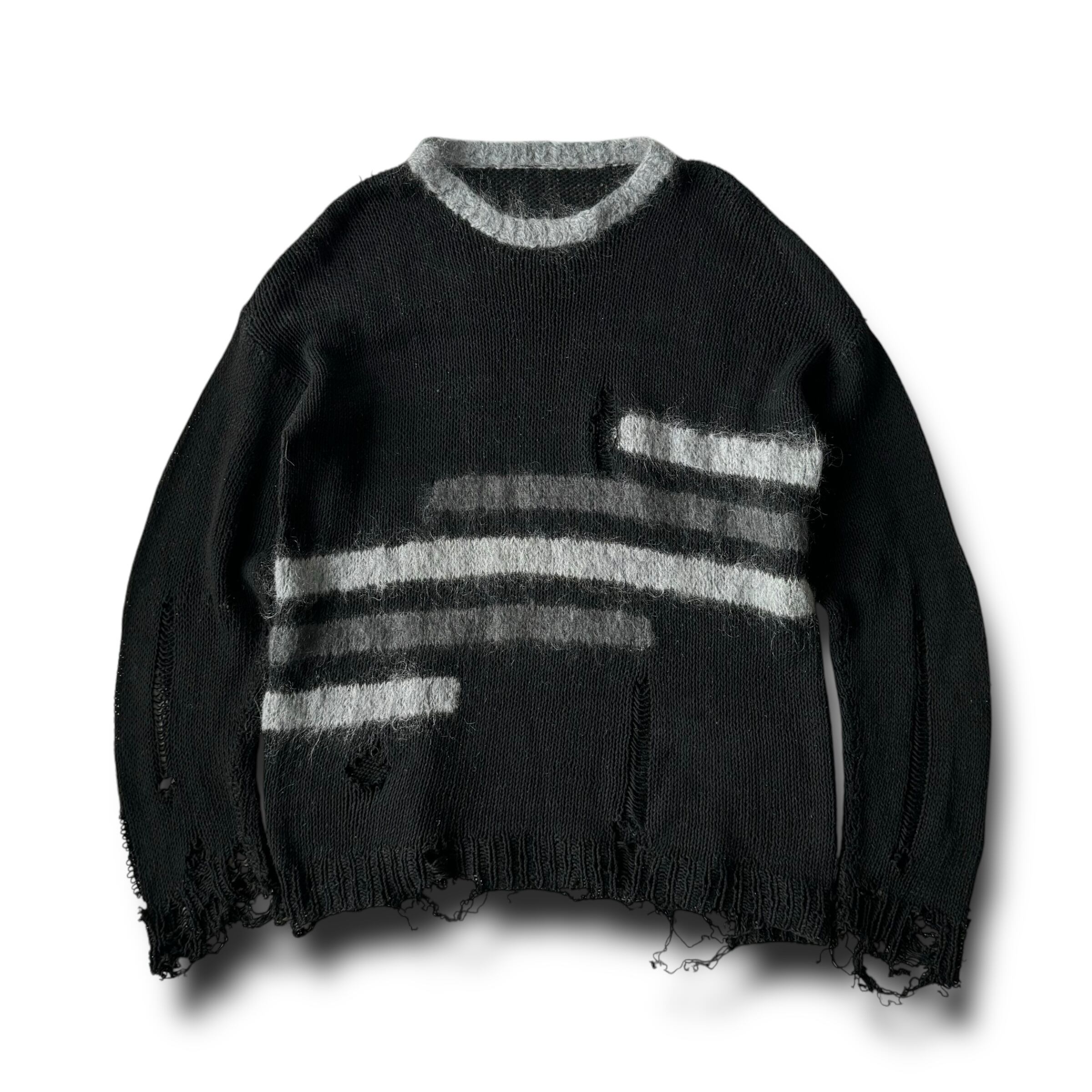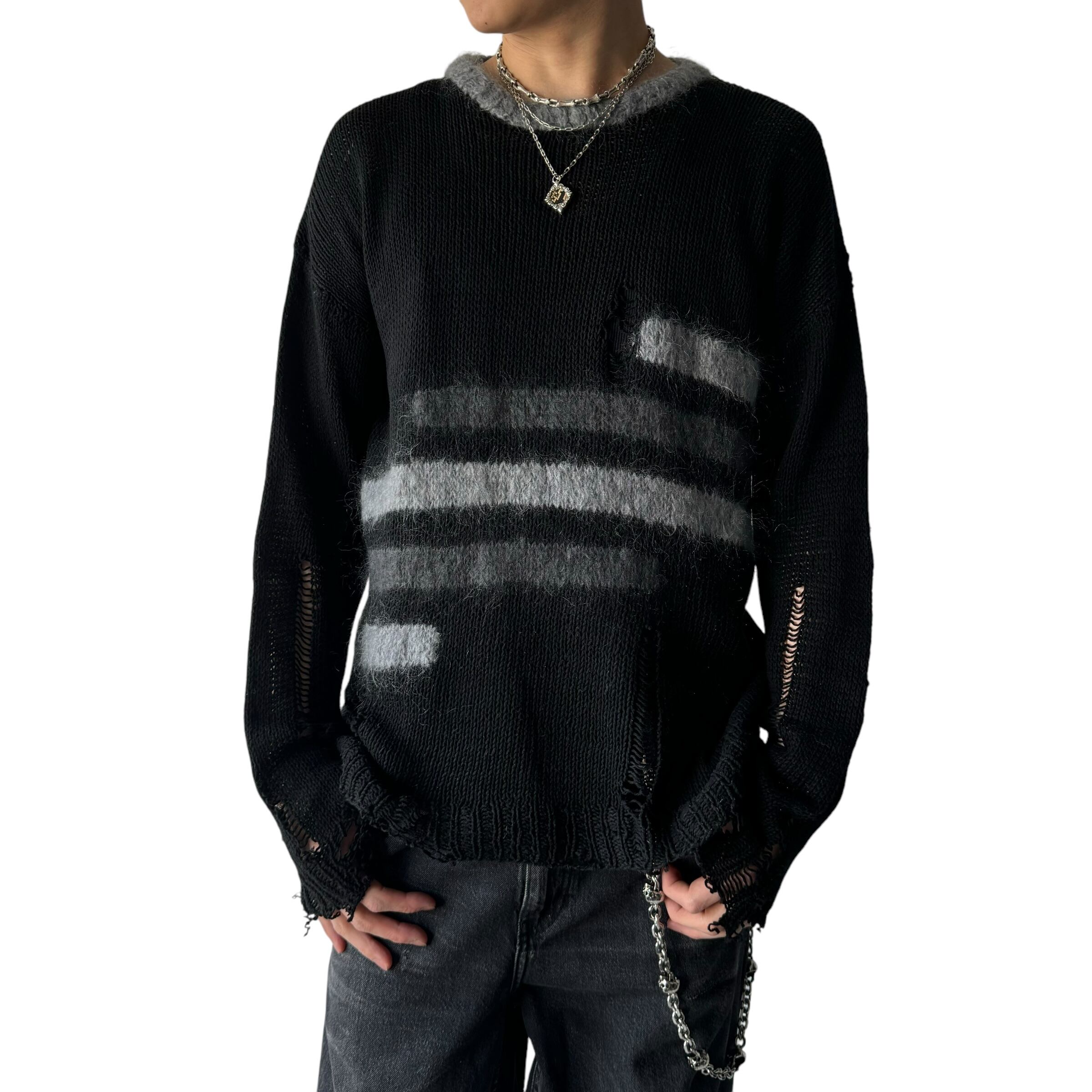 モノクロのシンプルなラインパターンにグランジテイストぶち込みングなクラッシュ加工を施したデザインニット‼️