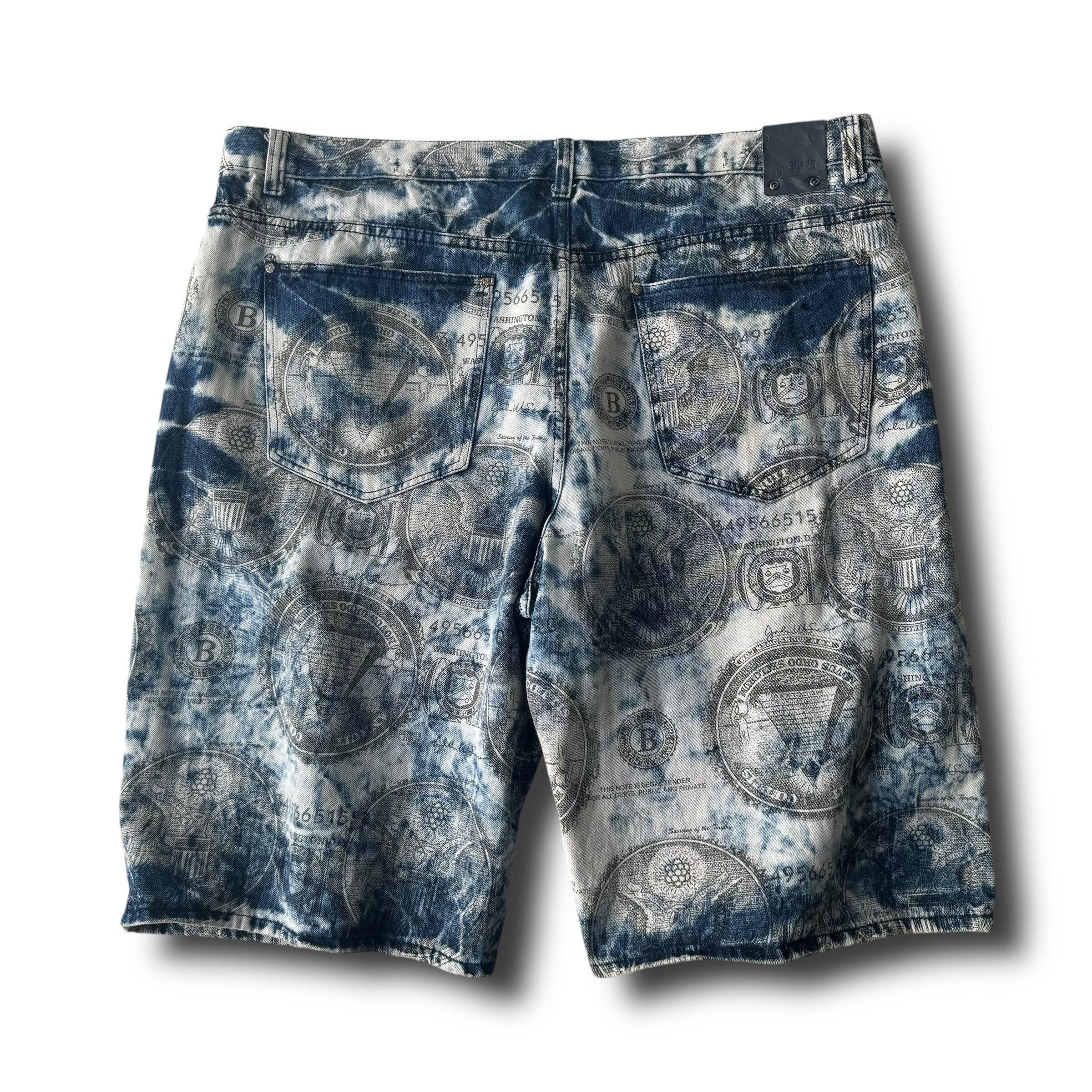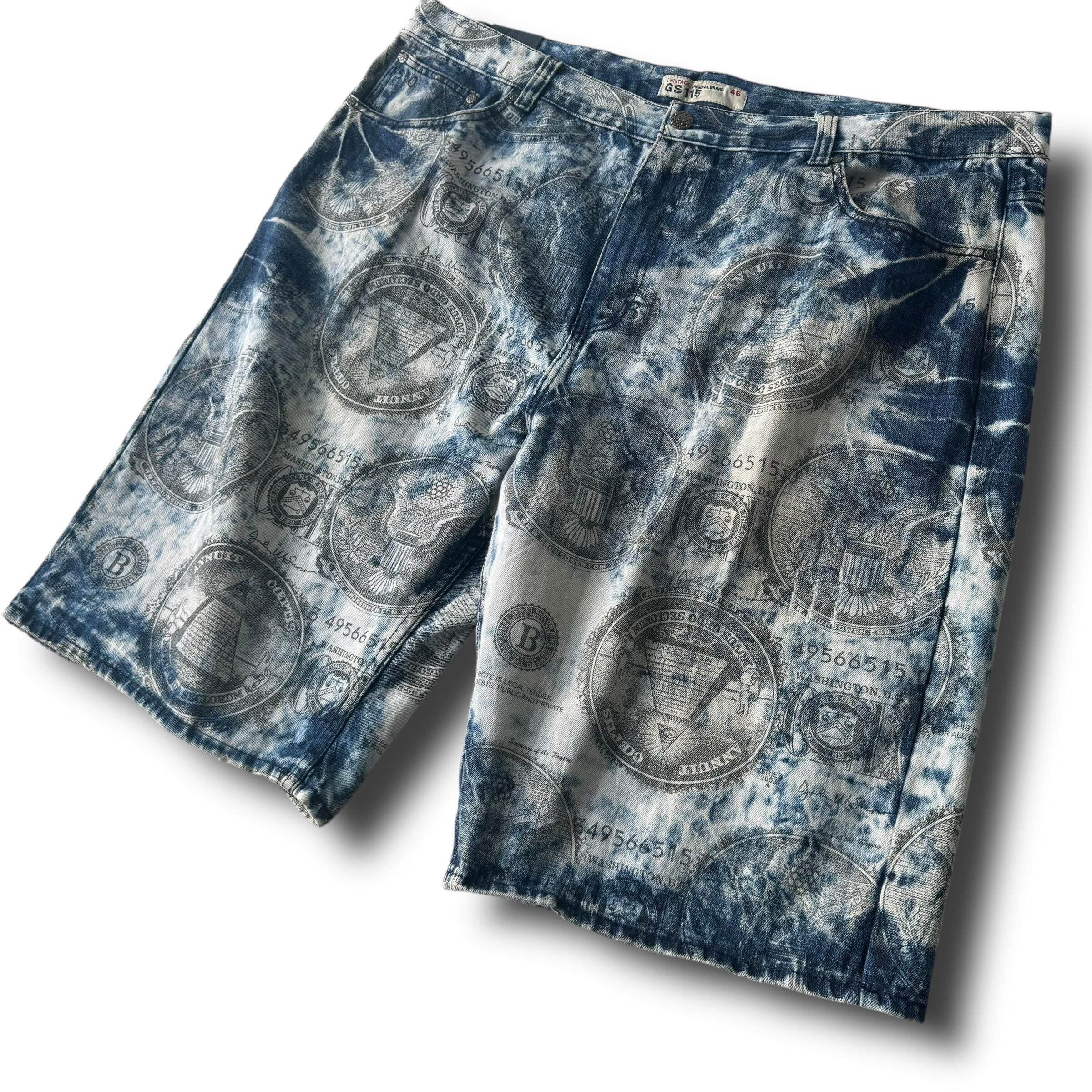 ♾ GS115 ♾ Chemical wash all over print wide denim shorts size 46